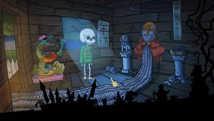 The Wardrobe è, infatti, un’avventura dove moltissimi oggetti possono essere raccolti o visualizzati ma dove tutto non funziona con tutto. Il classico meccanismo “trial and error” viene molto contestato dal protagonista ossuto che non esiterà a palesare le sue rimostranze sul fatto che una determinata azione da noi appena proposta non sia troppo sensata. A dire il vero, quello della contestazione da parte dei protagonisti, è una pratica che si sta diffondendo nelle avventure punta e clicca moderne ma qui gli autori ci sono andati giù con tutti i sentimenti.