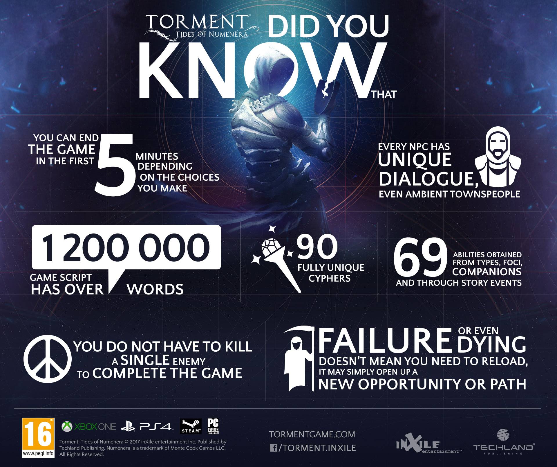 A poco più di una settimana dal suo esordio, Torment: Tides of Numenera si mostra in alcune curiosità grazie a questa infografica che alleghiamo alla flash.