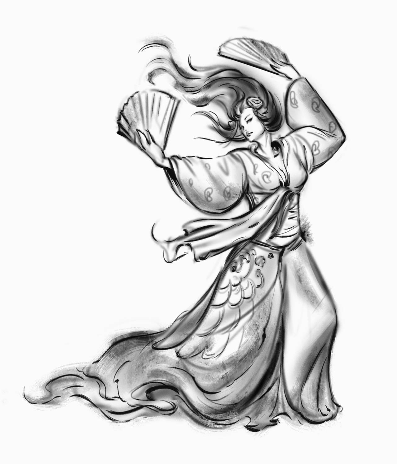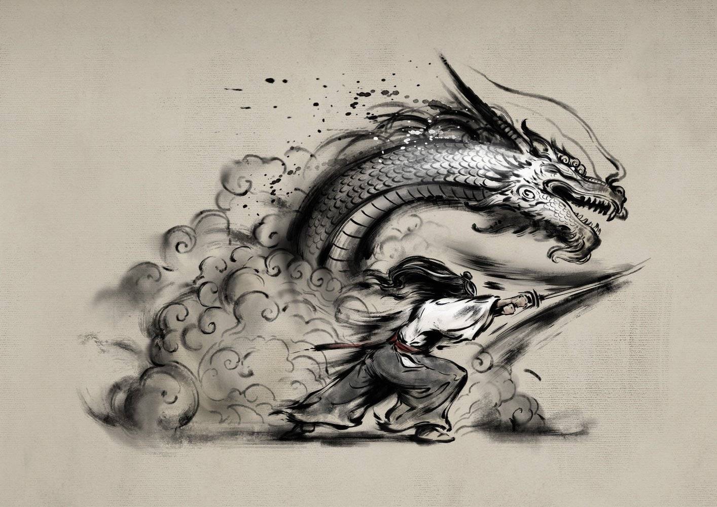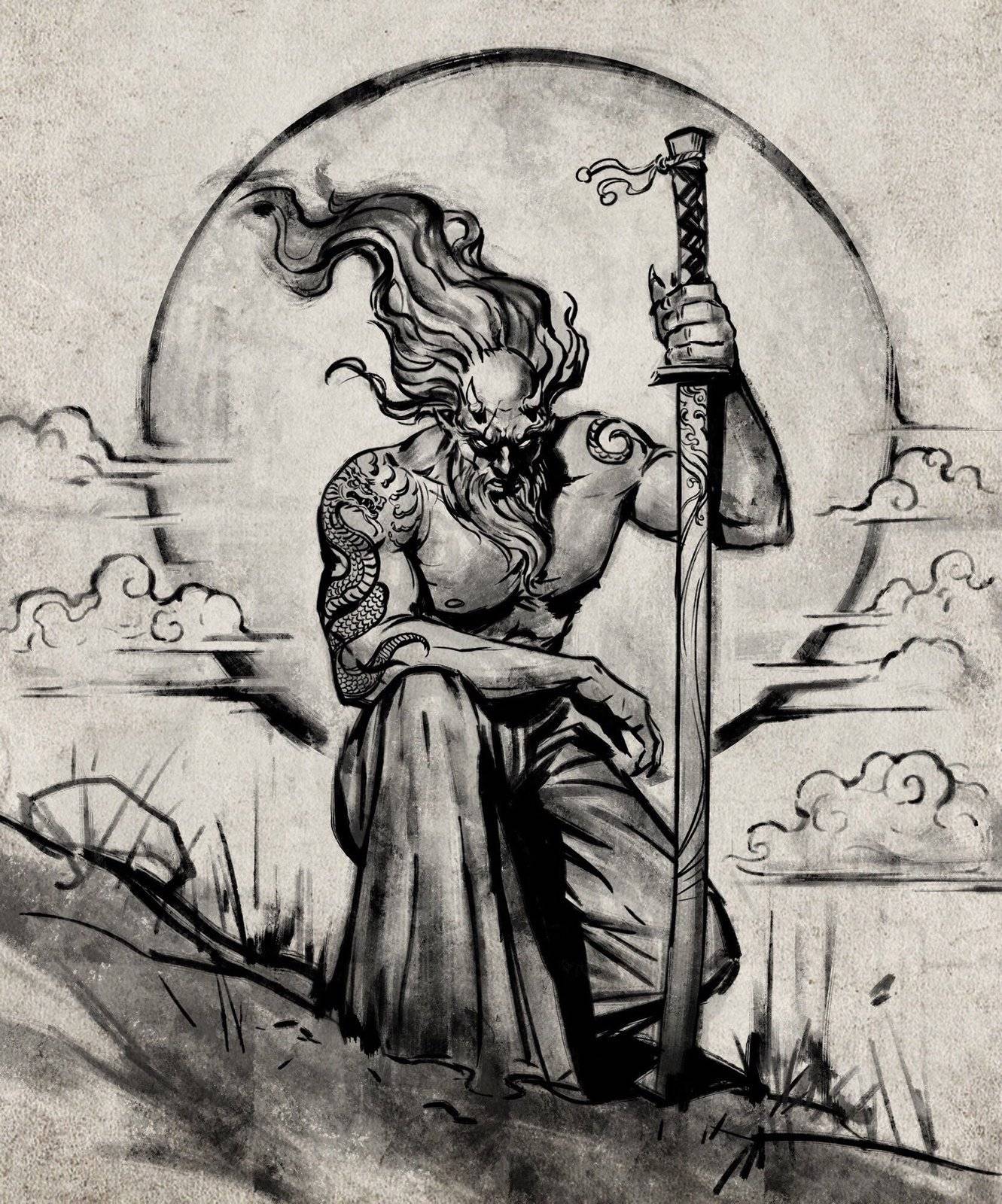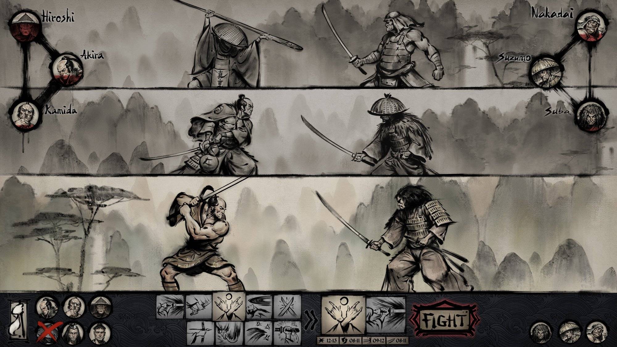 Comparto artistico che sfrutta lo stile Sumi con un aspetto che ricorda dei veri e propri dipinti