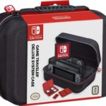 La custodia Deluxe è invece pensata per tutti coloro che non vogliono limitarsi a portare in viaggio la sola console portatile, ma desiderano un case più ampio in grado di trasportare l’intero set Nintendo Switch. Molto più ampio e capiente rispetto alla versione standard, il case firmato Bigben Interactive è dotato di scomparti che contengono e proteggono il display con i due Joy-Con attaccati, la Nintendo Switch Dock e l’impugnatura Joy-Con (o eventualmente il controller Switch Pro). Un’apposita tasca ospita i cavi HDMI e USB, le 2 scatole colorate in plastica per il trasporto delle game card e lei 2 box per le schede di memoria Micro SD.