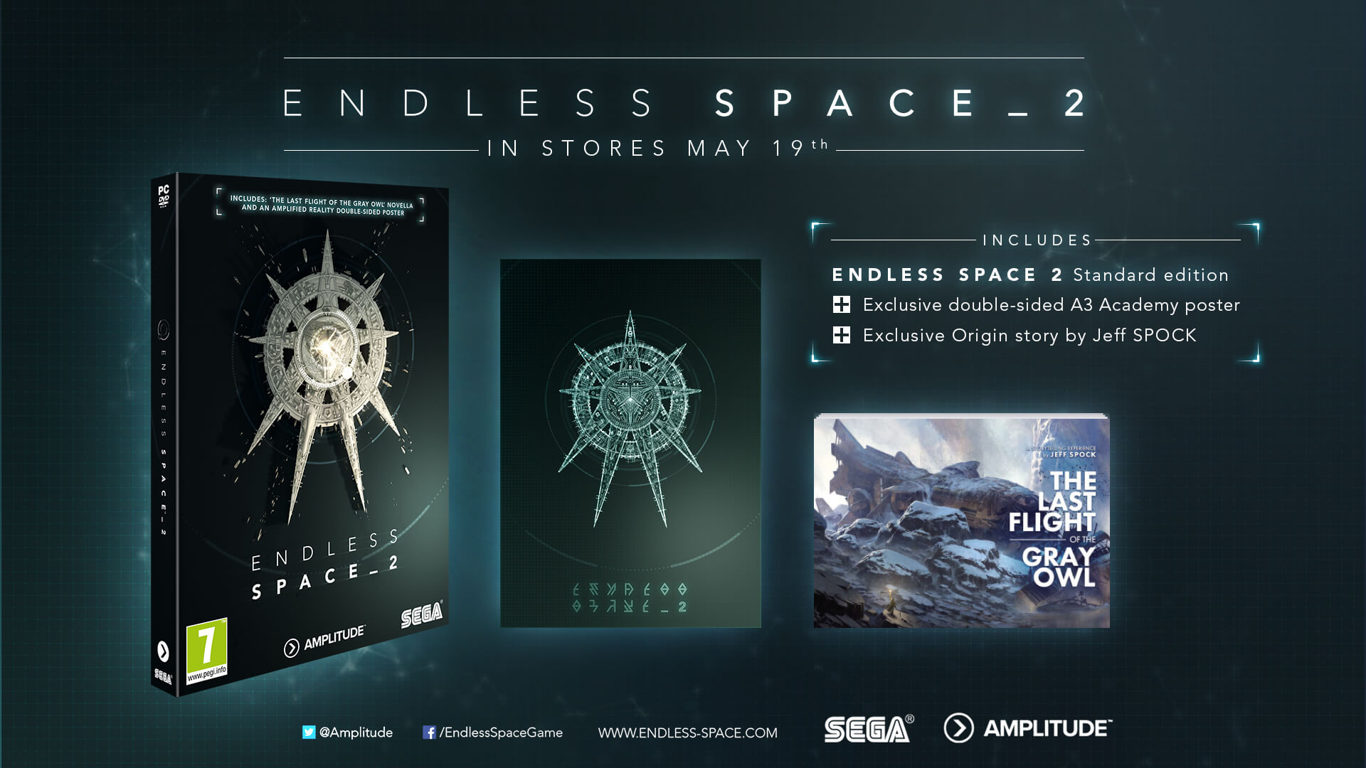 Amplitude Studios ha ufficializzato che Endless Space 2 debutterà il 19 maggio uscendo dalla fase di Accesso Anticipato su Steam. Il team di sviluppo ha pure annunciato una edizione fisica dello strategico fantascientifico 4X a turni. Tale edizione includerà un racconto scritto da Jeff Spock ma nato e pensato dalla community del gioco.