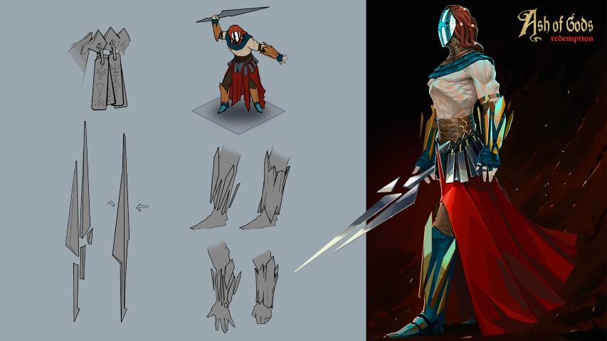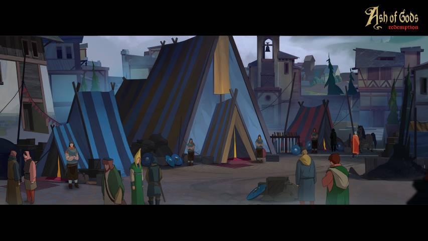 - Grafica scrupolosamente disegnata a mano. Lo stile visivo di Ash of Gods è stato ispirato dall’opera di Ralph Bakshi, dei cartoni animati della vecchia scuola e dello studio di animazione sovietico “Soyuzmultfilm” degli anni ’60. L’animazione dei personaggi nelle scene di combattimento si basa sulla cattura di motion degli attori dal vivo;