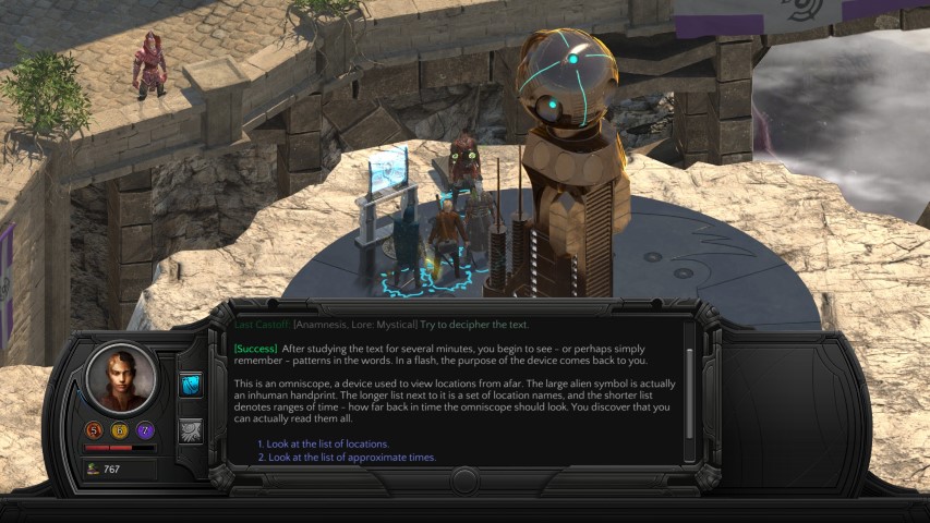 Ne deriva che in Tides of Numenera ogni tipo di personaggio, dal guerriero che pensa solo a menare le mani al mago talmente potente da poter leggere le menti (sì, è una possibilità), ha un suo senso logico e un suo modo di proseguire nel gioco, magari perdendosi inevitabilmente alcuni contenuti, ma comunque avendo sempre a sua disposizione i mezzi per risolvere le sfide da affrontare. A contribuire al senso di reattività del gioco ci sono le Tides, le cosiddette “maree”, che rappresentano determinati allineamenti morali ed etici cui il nostro alter ego si avvicinerà nel corso della partita, e che sono ben più complessi dell’ormai abusatissimo binomio “bene/male”. Se c’è, però, da ravvisare un leggero difetto in questa meccanica, esso sta nel fatto che è possibile usare anche le capacità dei membri del gruppo, rendendo così magari un po’ inutile farsi troppi problemi sul tipo di “build” da intraprendere nel caso si disponga di un party sufficientemente bilanciato.