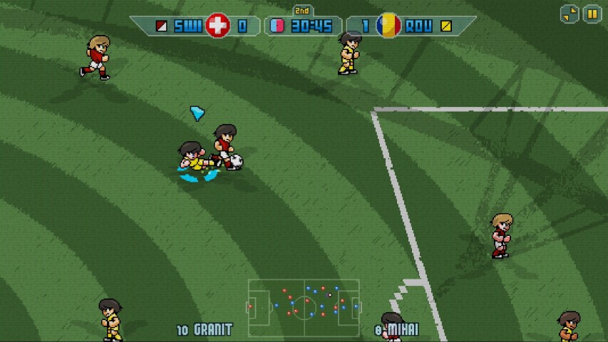 Pixel Cup Soccer 2017 amplia decisamente questo concetto e lo mischia con dinamiche più moderne. Il comparto grafico offre decisamente più colori e più varietà oltre a migliori effetti ombra e “particellari”. Si perché l’effetto pioggia è ben fatto e quando i calciatori effettuano una scivolata si muove qualche cosa in campo. Potenza delle nuove tecnologie e tecniche di sviluppo.