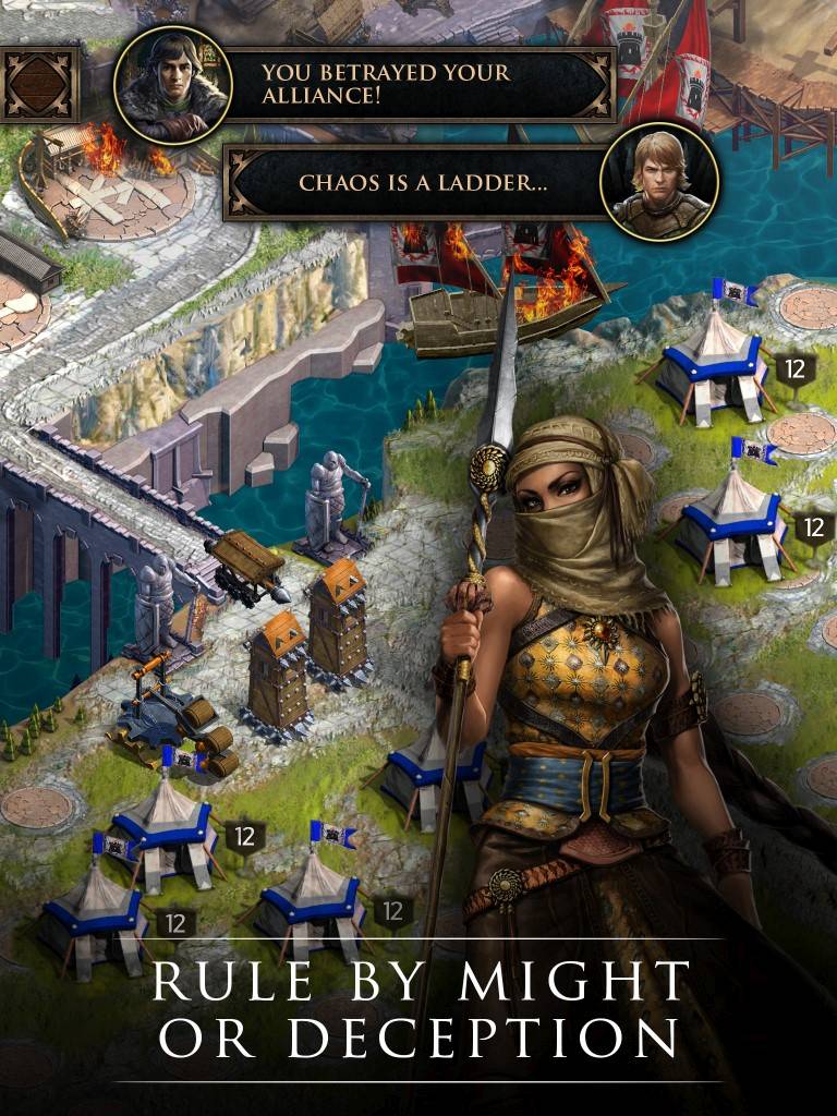 Sia che si tratti usare la forza o l’inganno, Game of Thrones: Conquest consente ai giocatori di governare la propria casata come preferiscono. Potenti eserciti saranno pronti a marciare contro i nemici, mentre i giocatori comandano i propri concili ristretti per sabotare i nemici dall’interno. Non sarà semplice conquistare Westeros. I giocatori dovranno difendere le loro casate dalle altre in battaglie player vs player o formare una strategica alleanza combattendo per il controllo dei Sette Regni.