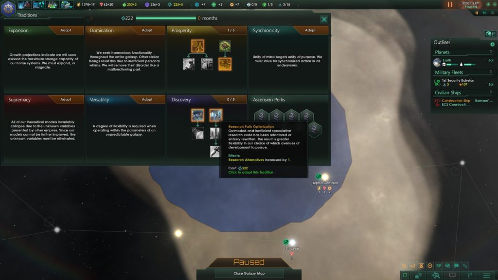 Indipendentemente dalle vedute morali della propria fazione robotica, però, tecnologie, anomalie ed eventi narrativi sono stati modificati e riscritti per adattarsi alla nuova prospettiva, evitando così un eccessivo effetto copia-incolla rispetto alle civiltà organiche, e lo stesso discorso vale anche per le perk dei sentieri di Ascensione, modificate nella forma ma non nella sostanza; al tempo stesso, però, mancano eventi davvero unici e particolari che interessino le intelligenze artificiali, fatta eccezione per l’occasionale malfunzionamento (e morte) di un personaggio; non c’era sicuramente da aspettarsi un cambio eccessivamente radicale di gameplay con Synthetic Dawn, ma è innegabile che Paradox avrebbe potuto fare qualcosa in più per rimarcare maggiormente le differenze tra i due tipi di specie. Molto gradite invece alcune aggiunte minori, come voci differenti per il proprio assistente a seconda della forma di governo prescelta.