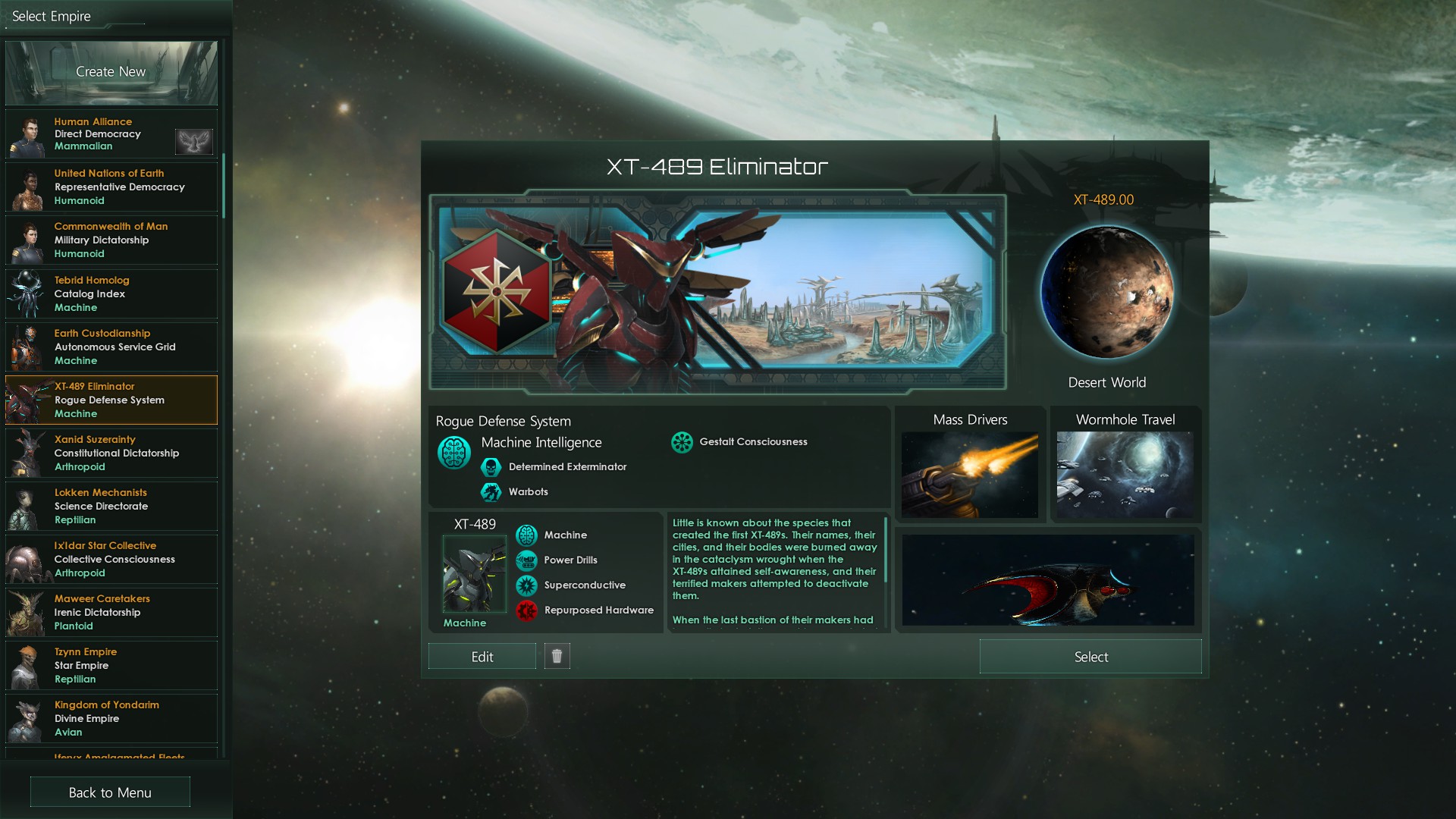 Poi, abbiamo i Driven Assimilators (“assimilatori a tutti i costi”) che emulano i temuti Borg di Star Trek assimilando e integrando nella propria comunità tutti gli esseri organici che incontrano. All’atto pratico, le specie biologiche incontrate verranno, una volta conquistate, trasformate in cyborg, rendendo così il proprio impero una inquietante collezione di varietà ex-organiche. Naturalmente, anche questa strada è irta di pericoli, segnati dai rapporti difficilissimi con i propri vicini: l’IA che governa il gioco tende infatti a non amare affatto – e a ragion veduta – questo tipo di macchine.