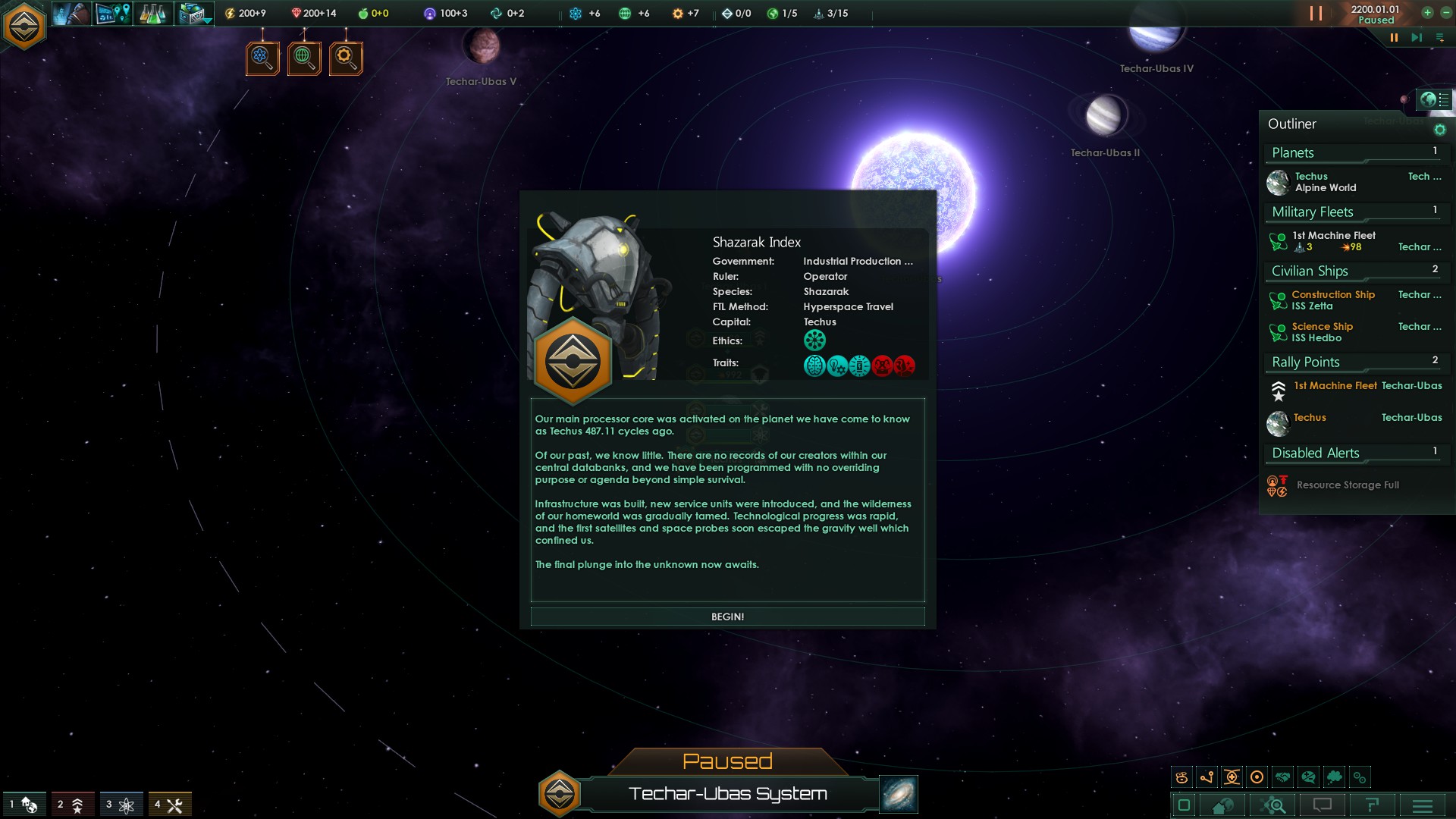 Ebbene, gli sviluppatori di Paradox Interactive hanno pensato bene di porre una pezza su tale mancanza, confezionando un’espansione pesantemente incentrata sulla narrazione (il team di sviluppo li chiama “Story Pack”, ed uno di essi è già stato rilasciato: mi riferisco, ovviamente, al piuttosto scarno Leviathans), che darà ai giocatori modo di comandare una civiltà formata interamente da macchine, con tutte le regole inedite e le novità di gameplay che contraddistinguono questo tipo di approccio. Synthetic Dawn, questo il nome del nuovo dlc, non è però un’espansione maggiore come la felice Utopia, limitandosi ad innestare contenuti inediti mirati che forniscano una ventata di aria fresca al gioco, giunto ormai all’incirca al suo anno e mezzo di vita.