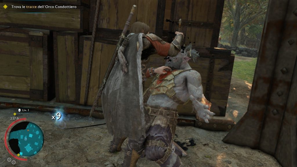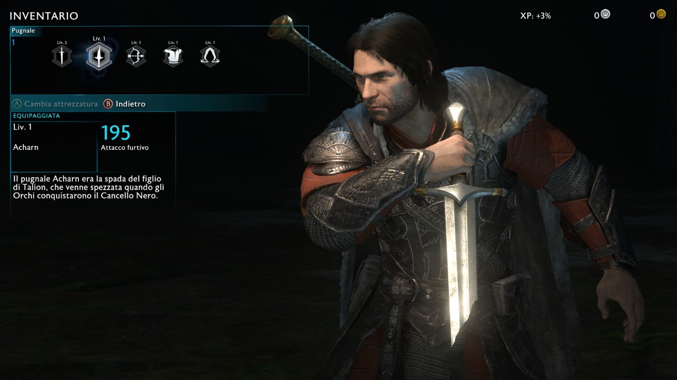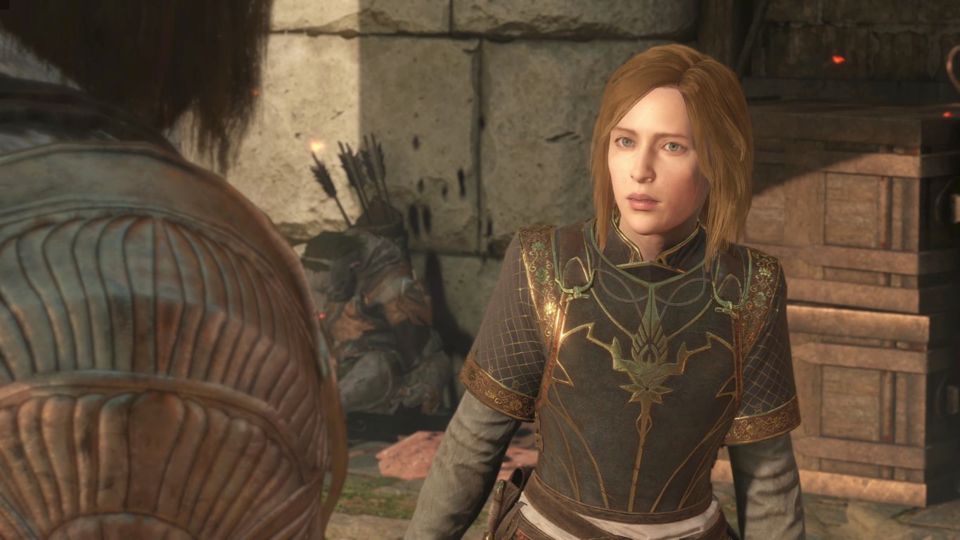 Il protagonista del gioco, Talion, insieme allo spirito di Celebrimbor che alberga nel suo corpo, di base è uno spadaccino provetto e un battipista, un esploratore. Celebrimbor gli conferisce innaturale agilità, capacità di scalare quasi ogni parete, velocità sovrumana e maestria con arco e frecce. Talion gira armato di spada lunga, coltello, arco, cappa e armatura (due new entry rispetto a Ombra di Mordor). L’equipaggiamento, contrariamente al passato, è molto vario e non va soltanto potenziato con rune sempre più potenti. Proprio come in un videogioco di ruolo, passano sotto lo sguardo attento del giocatore varie armi con statistiche personali e poteri sbloccabili solo previo completamento di prove d’abilità da superare. Per esempio abbiamo trovato una cappa che conferisce protezione aggiuntiva dai danni da fuoco ma, per ottenerla, dobbiamo dar prova di padroneggiare il fuoco uccidendo con esso un capitano degli Orchi. Questo, lo ripetiamo, è solo uno dei tanti esempi che si possono fare, riguardo ai poteri aggiunti ad ogni elemento equipaggiabile.
