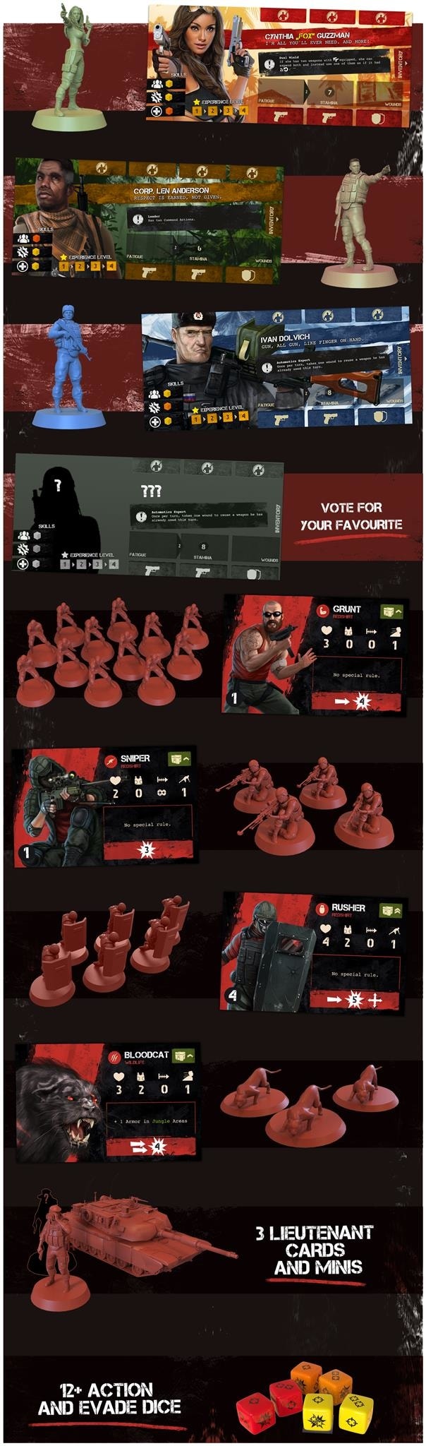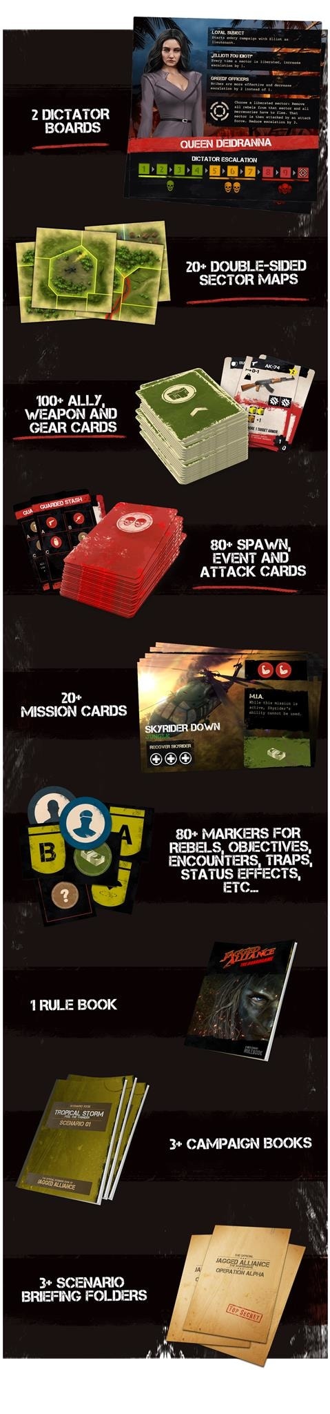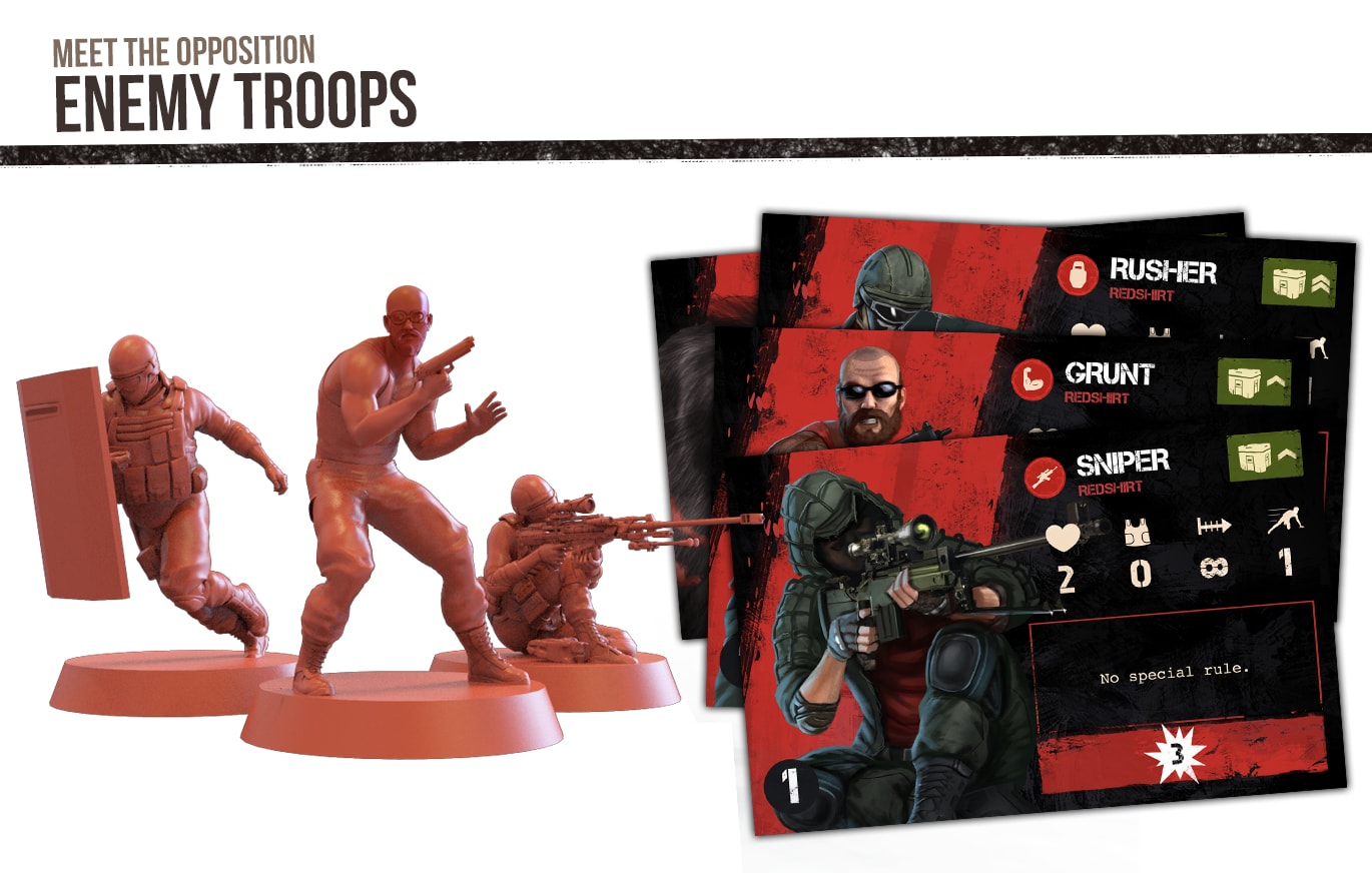 Il gioco in scatola promette componenti di alta qualità (come miniature di mercenari e nemici riprodotte con dovizia di particolari) e più di cento armi e oggetti fra cui scegliere. Jan Wagner, co-fondatore di Underground Games, ha dichiarato:
