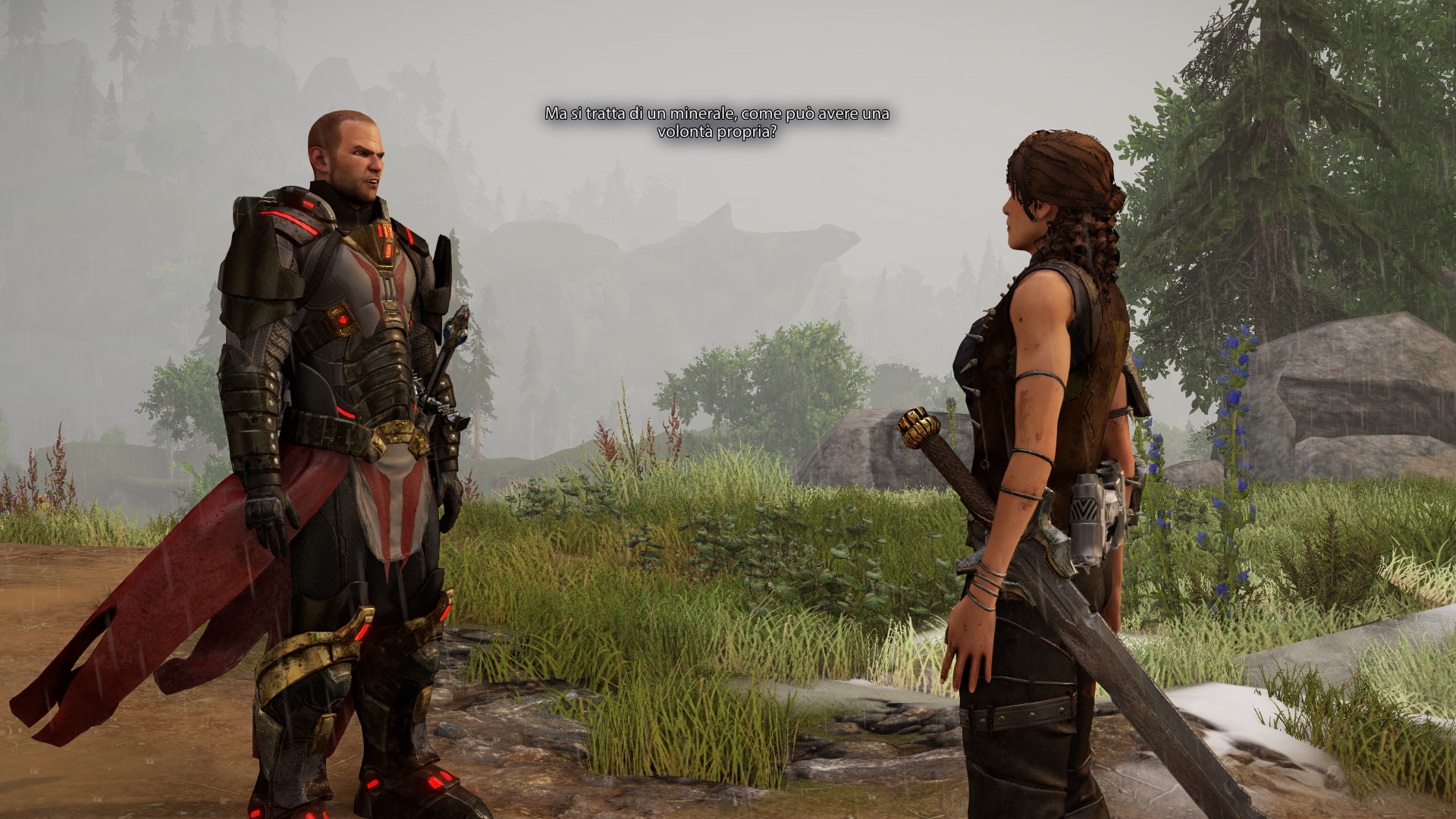 È un vero peccato, dunque, che a tanti ottimi contenuti sul piano del world design non venga accompagnata anche una sceneggiatura di qualità equiparabile: l’intreccio del gioco non è, di per sé, particolarmente disprezzabile, né lo sono i personaggi – semplicemente, sia l’uno che gli altri non sono nulla di memorabile, e sarà davvero molto facile dimenticarsi il nome dell’ennesimo contadino da interpellare per una missione, o il punto della storia cui si era arrivati. A questo si aggiungono personalità dimenticabili per Jax e i suoi variegati compagni, uno dei quali può accompagnare il protagonista per dargli una mano nei scontri più duri; manca, insomma, quel tocco in più di carisma e carattere che farebbe veramente decollare le trame principali e secondarie di ELEX, valorizzando ancor di più un’ambientazione a tratti ispirata e coinvolgente. Fortunatamente, il discorso vale solo in parte per le innumerevoli quest offerte al giocatore: se è pur vero, infatti, che il modus operandi non varia mai più di tanto – uccidi tot nemici, parla con tizio, e così via – tantissime di loro offrono una certa, assai apprezzata dose di consequenzialità. Nel corso della mia prova ho, per esempio, potuto decidere il destino di una piccola cittadina, scegliendo con chi allearmi e chi ostacolare e osservando poi gli inevitabili risultati direttamente in gioco; non manca la possibilità di uccidere anche personaggi importanti per la trama (e il gioco, in un fantastico slancio di libertà decisionale per il giocatore, si regolerà di conseguenza lasciando sempre aperta una strada per proseguire), così come una simulazione sociale davvero ben realizzata. Molti incarichi, per esempio, propongono più esiti in contrasto fra loro, appoggiando una fazione piuttosto che un’altra: irritando eccessivamente una di esse, non sarà difficile vedersi preclusa la possibilità di commerciare all’interno di un campo, o persino essere cacciato a vista; completano il tutto delle reazioni scriptate piuttosto soddisfacenti per varie eventualità, come l’atto di rubare o di uccidere altri Png.