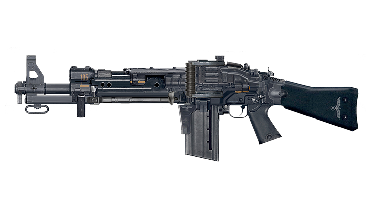 A volte, negli scontri a fuoco, l’efficienza non può basarsi sul concetto di “un colpo, una vita” ma deve rifarsi a quello di “spara più che puoi”. In questi casi, B.J. ha a disposizione la Maschinenpistole, una mitragliatrice leggera dall’impressionante rateo di fuoco. Poche armi sono in grado di ripulire una stanza altrettanto rapidamente di una Maschinenpistole (o due) in mano a B.J.
