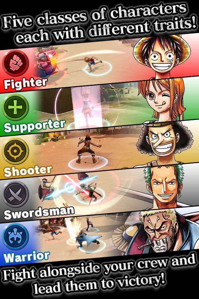 I personaggi si suddividono in Lottatori, Guerrieri, Assistenti, Tiratori e Spadaccini e sono dotati di abilità uniche e personali che consentono ai giocatori di personalizzare il proprio stile di gioco. I giocatori potranno allearsi con gli amici e combattere contro altri appassionati da tutto il mondo in tempo reale per diventare il re dei pirati dei sette mari.