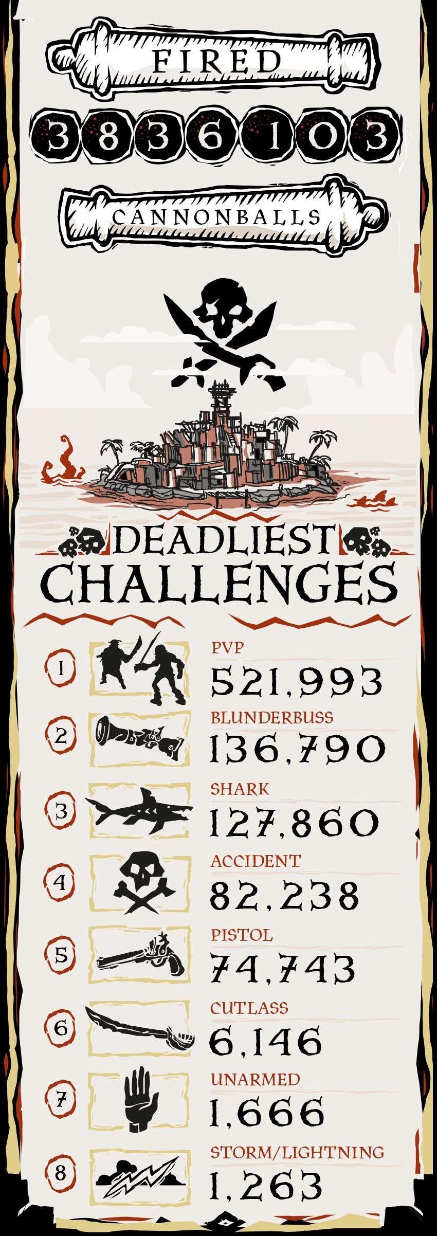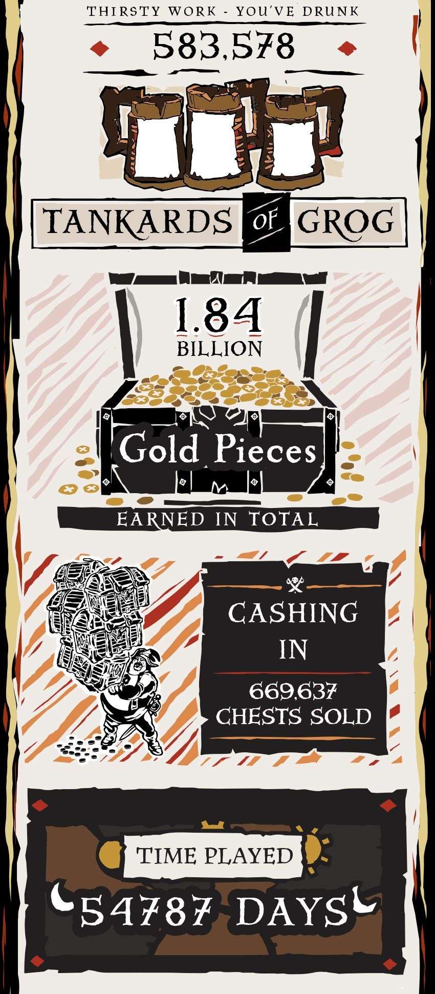 Ecco tutti i numeri che riguardano svariati “campi” dalle pinte di grog bevute ai dobloni guadagnati dalla conquista dei tesori.