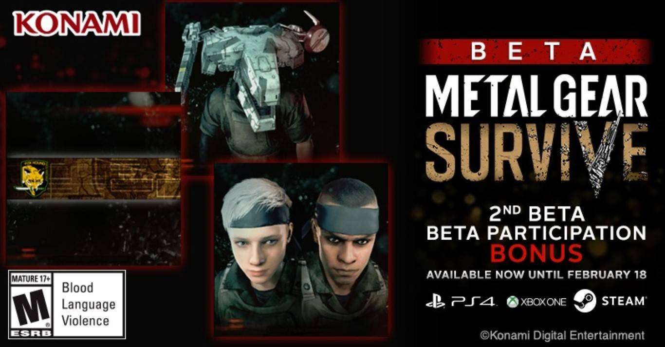 La beta Pc di Metal Gear Survive scatterà oggi a mezzanotte. L’accesso sarà esteso anche alle piattaforme PS4 ed Xbox One. Il test durerà fino alle 16 del 18 febbraio. I fan potranno provare la modalità coop, giocare le missioni e partecipare agli eventi live