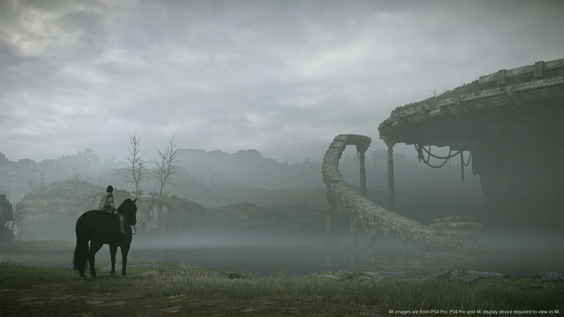 Tra lui e il ragazzo c’è infatti una forte connessione che si sviluppa per tutta la durata dell’avventura: saltando dalla sua groppa, per esempio si può tentare di risalire sul corpo di un colosso per poi attaccarlo colpendolo nelle parti alte, oppure lanciandolo al galoppo si possono affrontare i Colossi volanti. In ogni caso occorre un certo tempismo per manovrare bene il cavallo ed evitare di cadere, magari mentre si cerca di saltare verso la gamba di un “mostro” per aggrapparsi. E fare attenzione anche a fattori quali la barra di energia del destriero, e quello della resistenza di Wander: se si esaurisce la prima, Agro può stramazzare al suolo, mentre nel secondo caso il protagonista rischia di stancarsi, di perdere la presa e di non riuscire più a mantenere l’equilibrio o a rimanere appeso al quadrupede e dunque cadere giù.