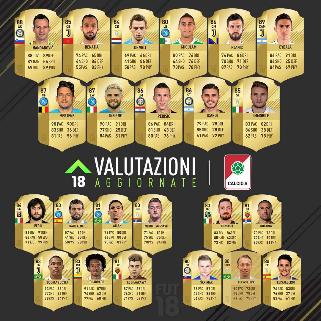 Gli aggiornamenti riguardano i giocatori la cui nuova valutazione generale è pari o superiore a quella originale: per quest’anno non sono previsti aggiornamenti di riduzione delle valutazioni.