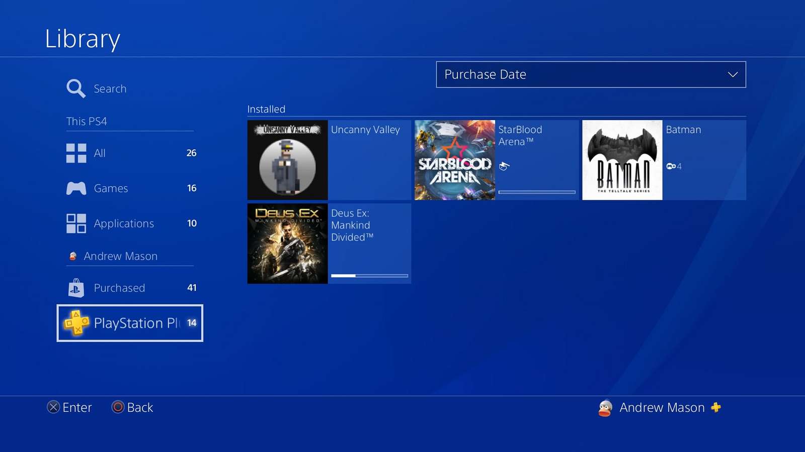 Inoltre, una scheda PS Plus mostra tutti i giochi mensili gratuiti a cui avete accesso ed offre la possibilità di nascondere app specifiche nella scheda “Acquistato”, come ad esempio vecchie prove o demo di giochi.
