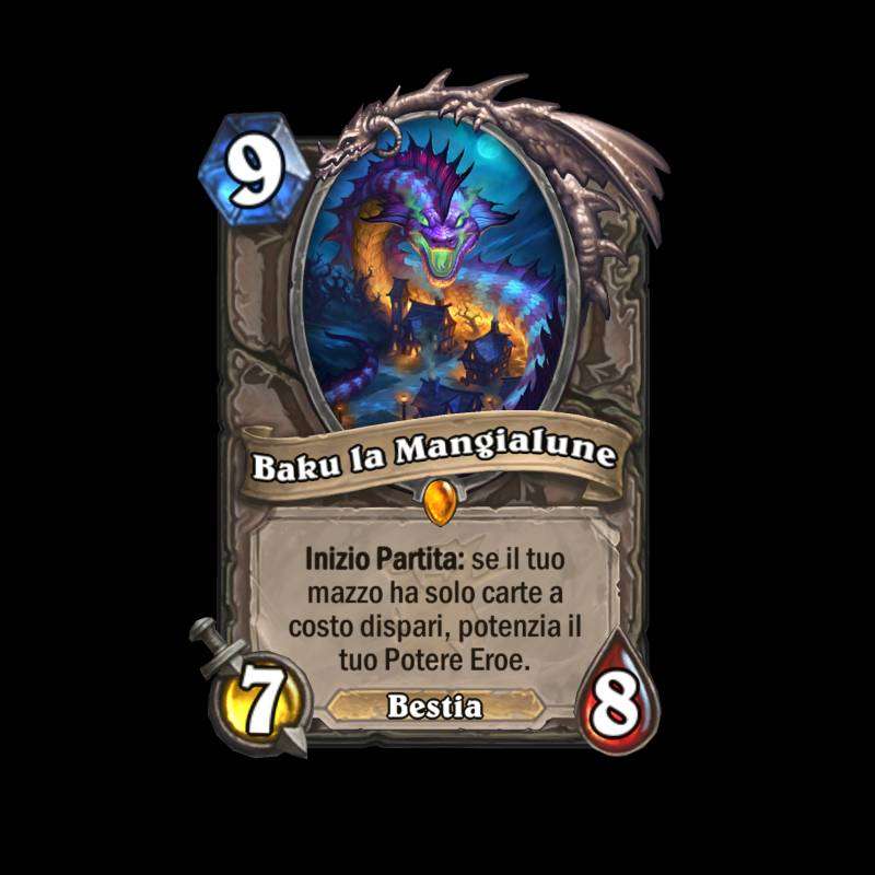 - Baku la Mangialune: se il vostro mazzo ha solo carte a costo dispari all’inizio della partita, il vostro Potere Eroe viene potenziato.