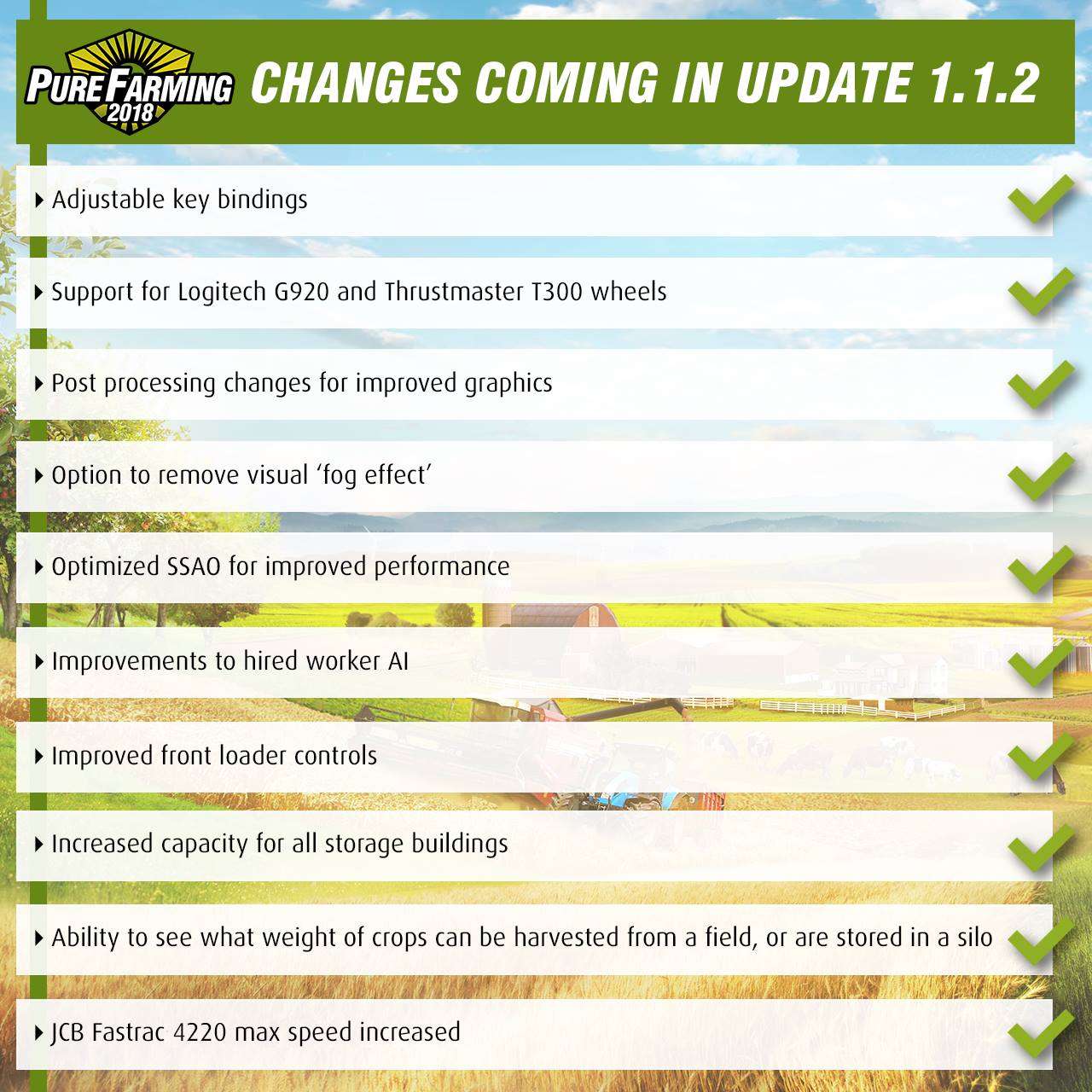 Ice Flames, sviluppatore di Pure Farming 2018, ha rilasciato proprio di recente la patch 1.1.2 per il suddetto titolo: essa contiene un gran numero di fix e aggiustamenti richiesti in particolar modo dai giocatori. Per tutti i dettagli potete fare riferimento alla comoda infografica che vi proponiamo in basso.