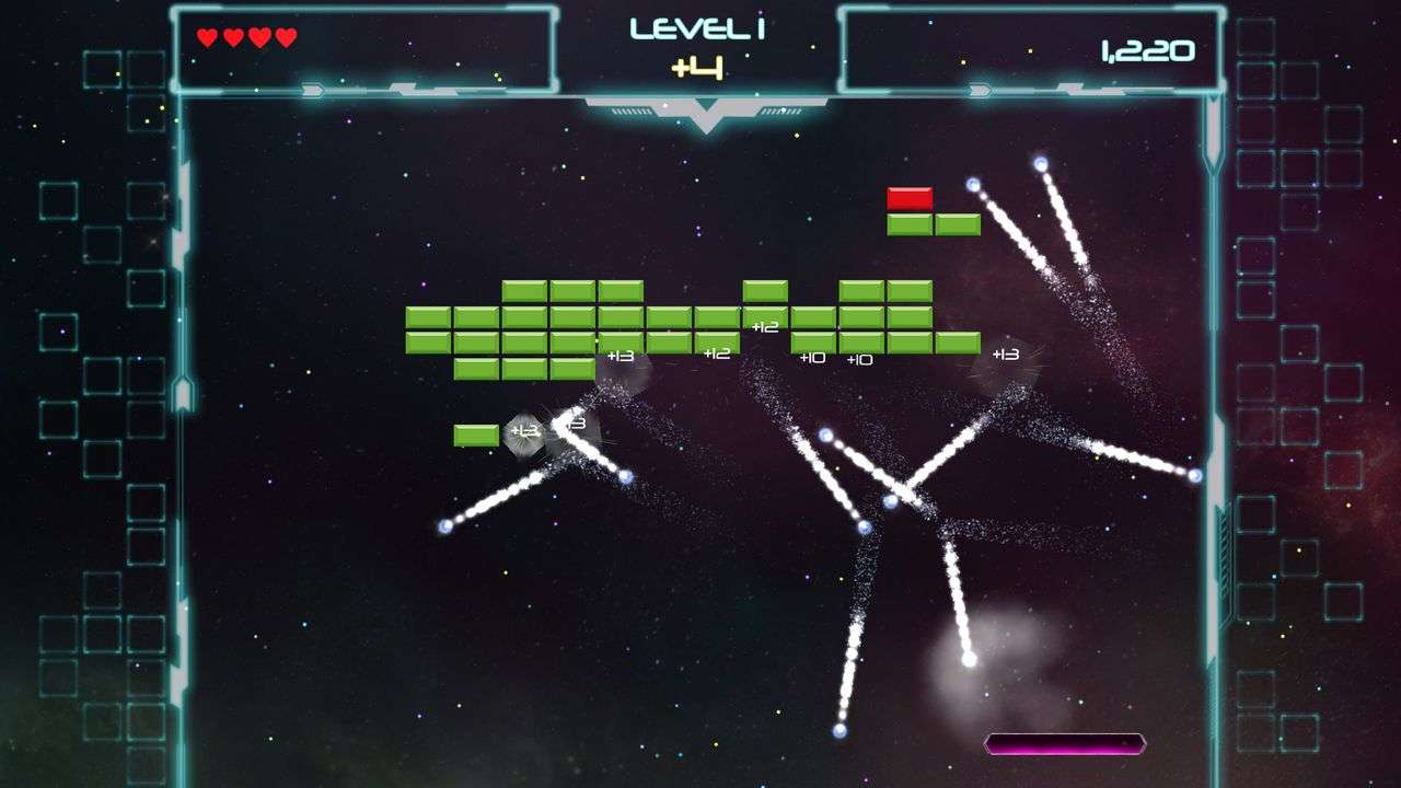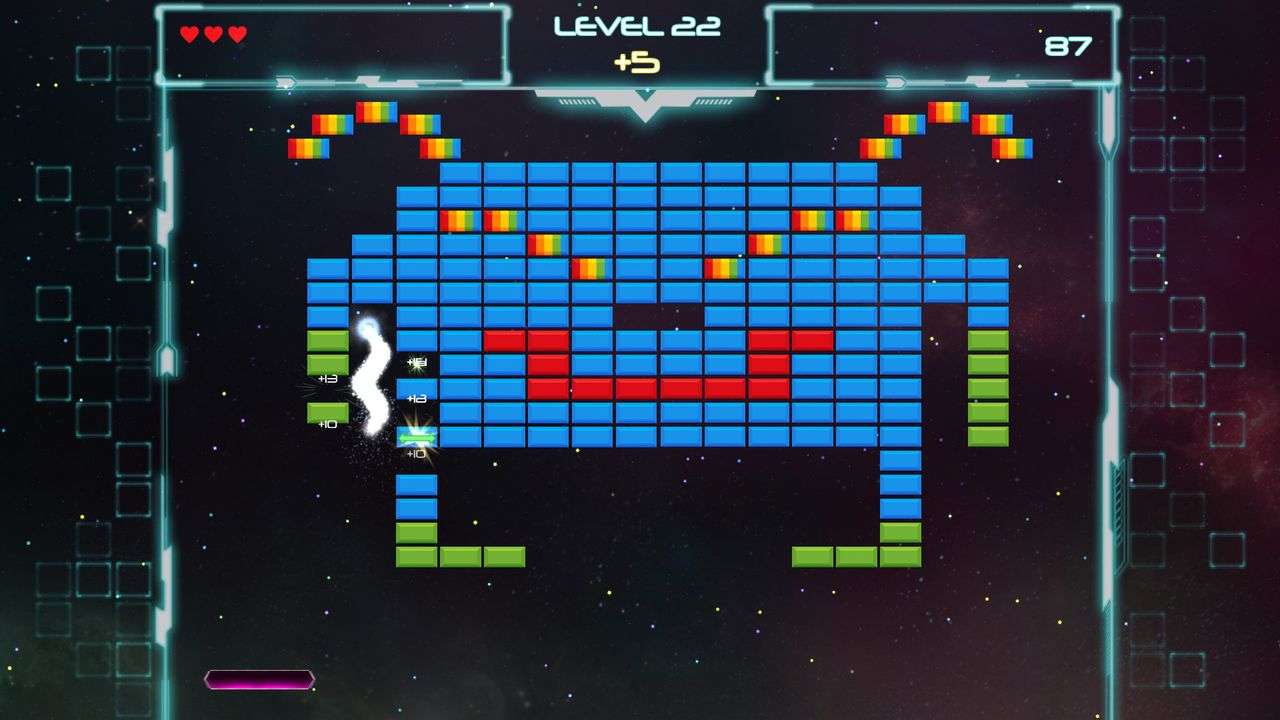 In un titolo del genere non possono mancare i power-up, modificatori di gioco che il giocatore può utilizzare per velocizzare la sfera, espandere o restringere la lastra o penetrare la dozzina di mattoncini, tutti diversi tra di loro.