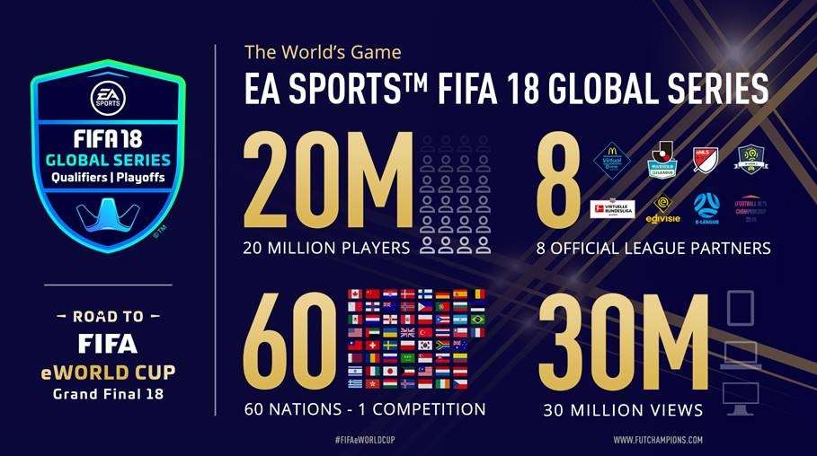 Le EA Sports Fifa 18 Global Series sono un passo decisivo nello sviluppo di un ecosistema competitivo unificato di EA e della Fifa. Questa competizione ha portato il videogioco sportivo più popolare al mondo ad un nuovo livello nel mondo competitivo, con più di 20 milioni di giocatori in tutto il mondo coinvolti in questa stagione della modalità competitiva e accomunati dal grande sogno di diventare Campione del Mondo.