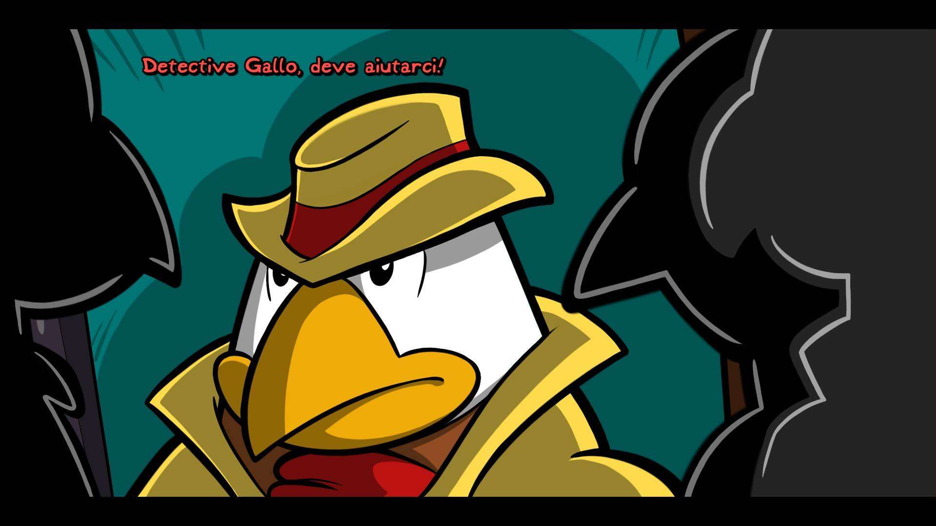 Detective Gallo è frutto di un lavoro interessante. Tecnicamente il gioco si presenta abbastanza pulito. Graficamente propone uno stile molto fumettistico realizzato a mano. A tratti sembra di leggere un fumetto Disney ambientato a Paperopoli. Non stiamo osando ma è un dato di fatto.