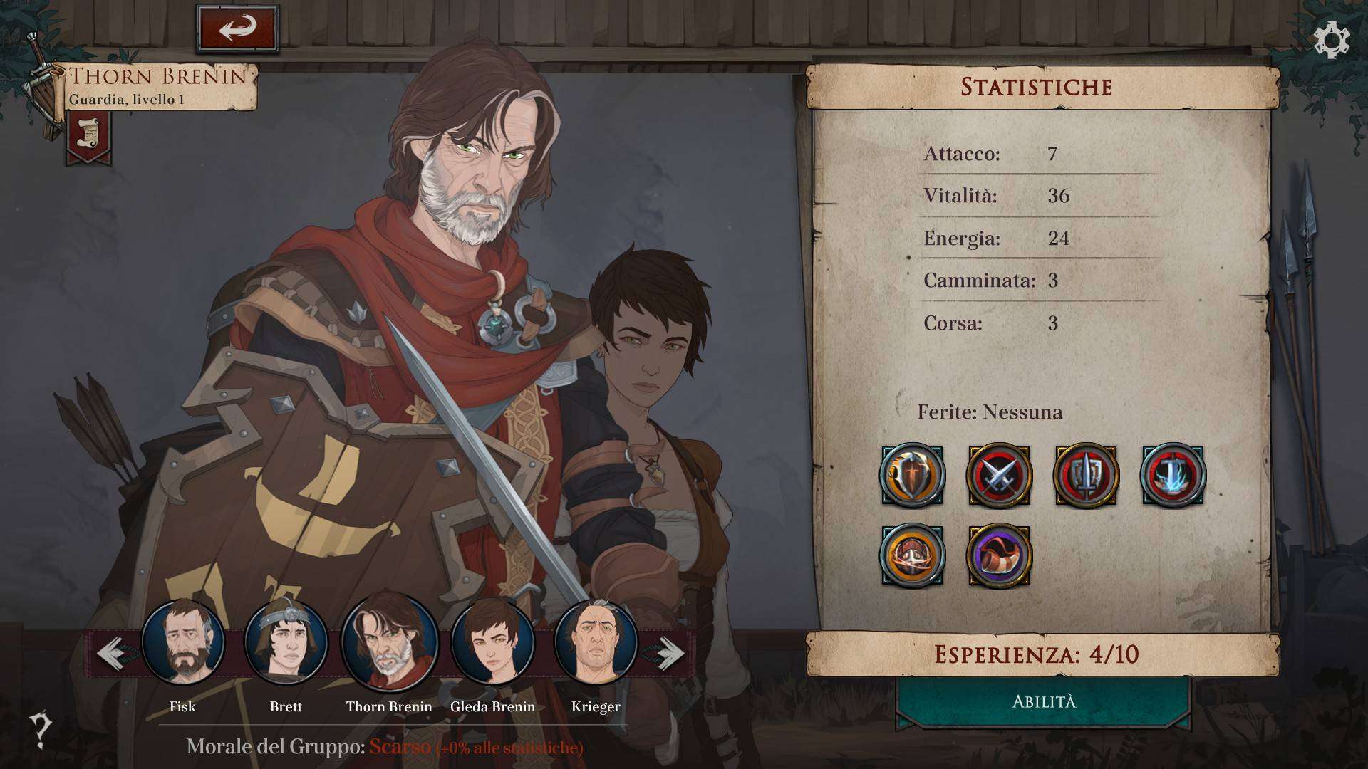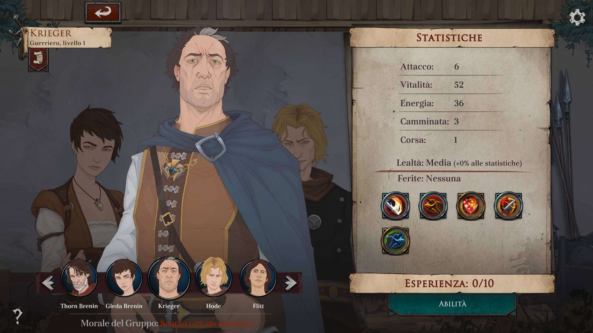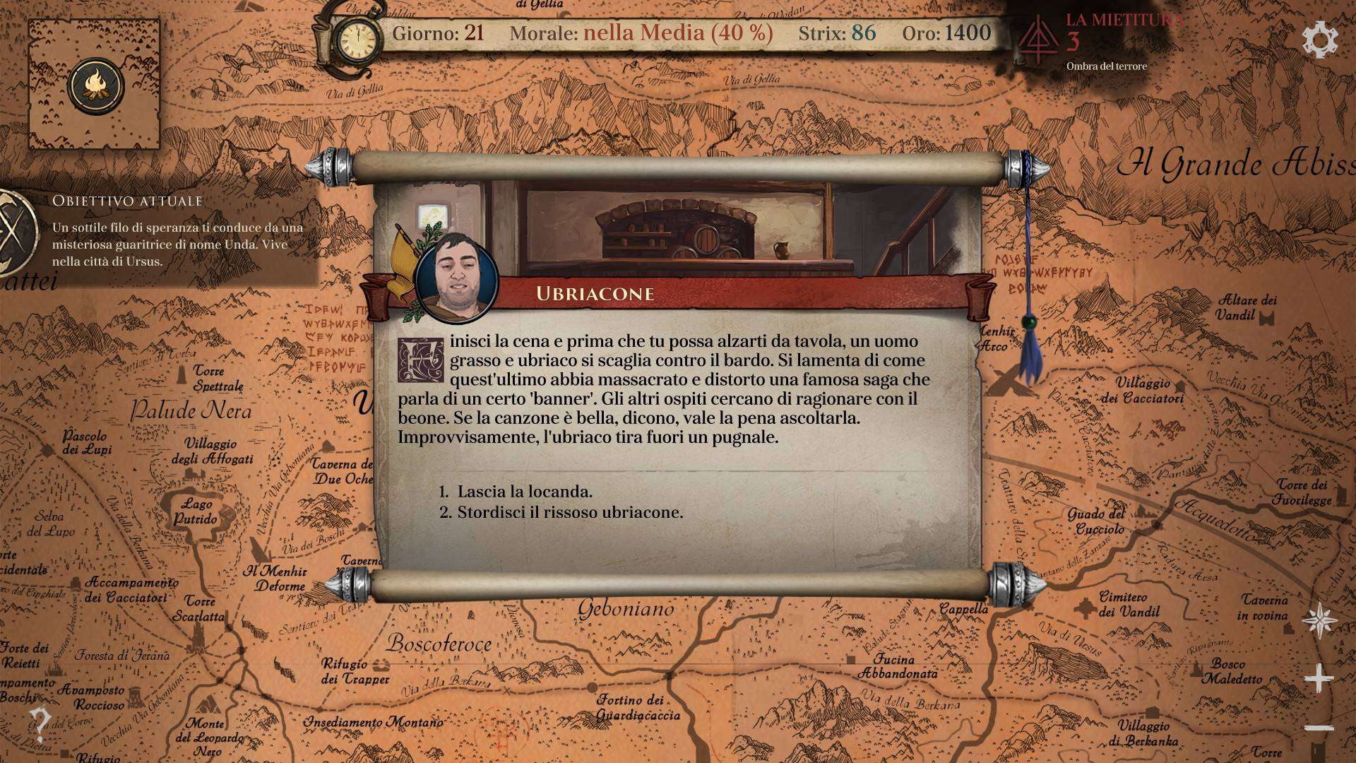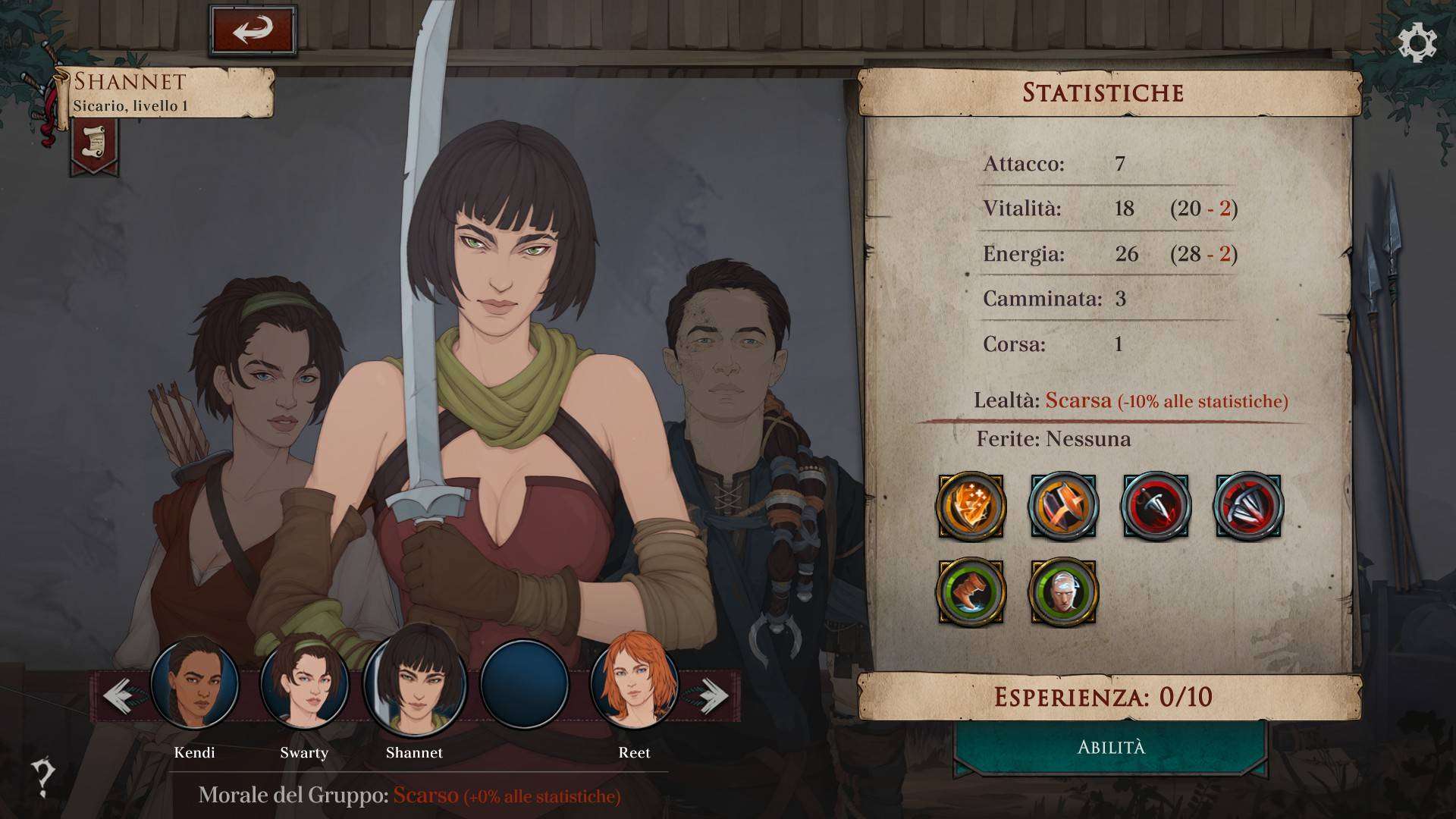L’equilibrio narrativo-gestionale è molto interessante anche se non è sempre facile reperire Strix che, come abbiamo visto hanno la duplice funzione curativa e permettono gli spostamenti nella mappa. E c’è anche da tenere conto il morale che influisce sui dialoghi tra compagni di ventura facendoli diventare più leali o meno avvezzi alla collaborazione e questo può pesare lungo il cammino. Ma certamente non finisce qui.