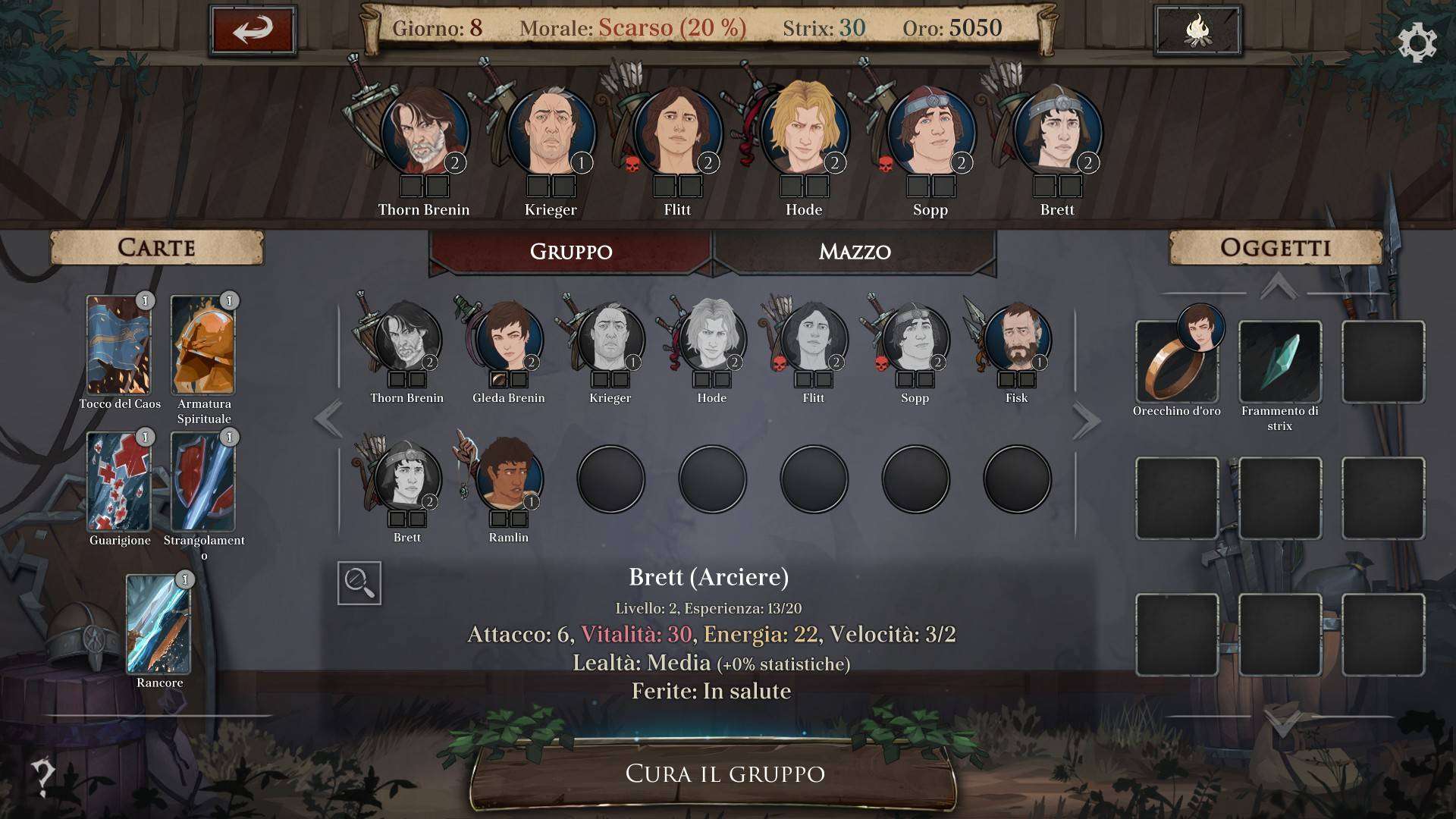 Durante il nostro viaggio, e tra una battaglia e l’altra, sarà possibile curare i nostri eroi spendendo un determinato numero di Strix. Queste pietre possono essere frutto di una battaglia, di un ritrovamento o possono trovarsi negli oggetti dei mercanti che si incontreranno via via lungo il nostro peregrinare.