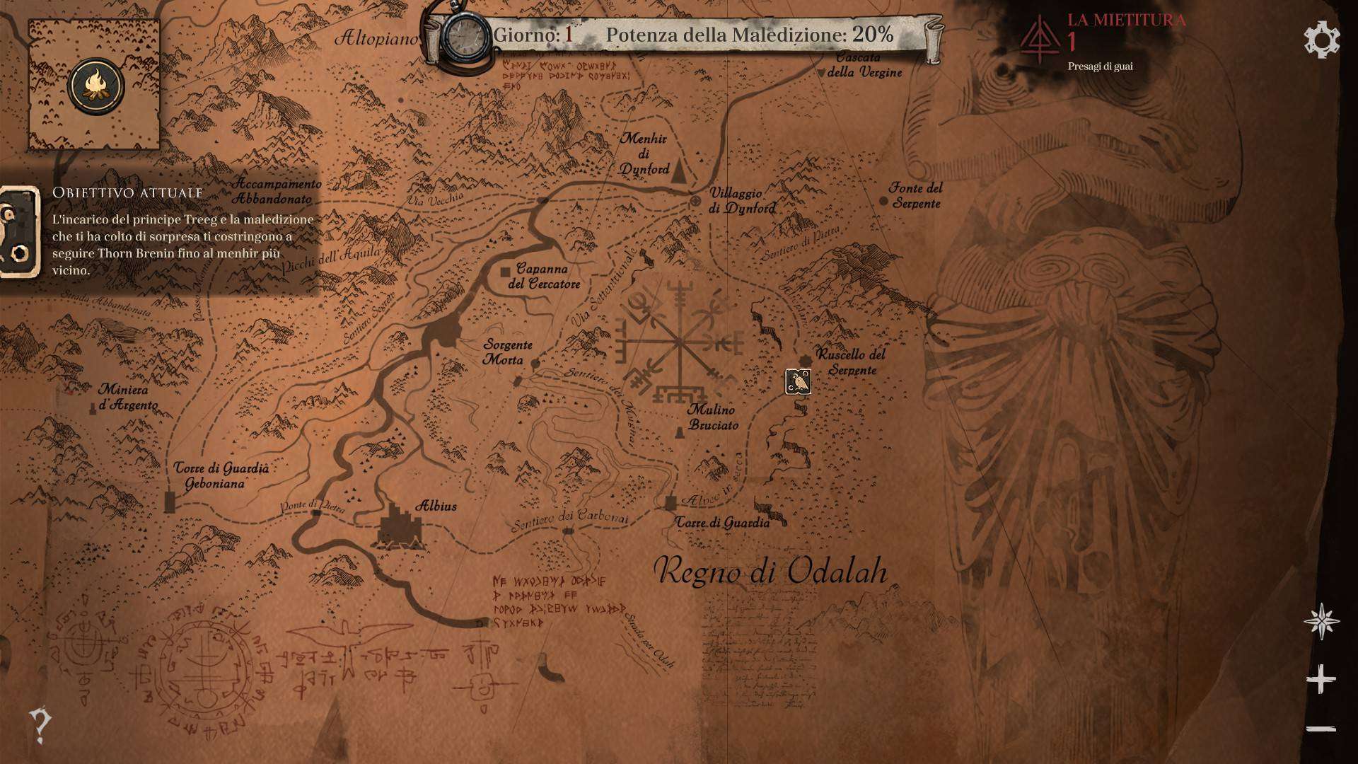 Di pregio anche le diverse ambientazioni che oltre ad avere diversi dettagli notevoli e tante raffinatezze sono molto varie tra loro. Luoghi oscuri, o città più o meno grandi brulicanti, comunque, di vita ed attività o natura selvaggia. Nota di merito anche per la mappa che segna i nostri movimenti: una pergamena così dettagliata anche nell’esporre punti geografici di villaggi o posti “secondari” rare volte l’abbiamo vista. Per non parlare dei vari orpelli e ghirigori presenti. Anche la mappa di gioco diventa “preziosa”.