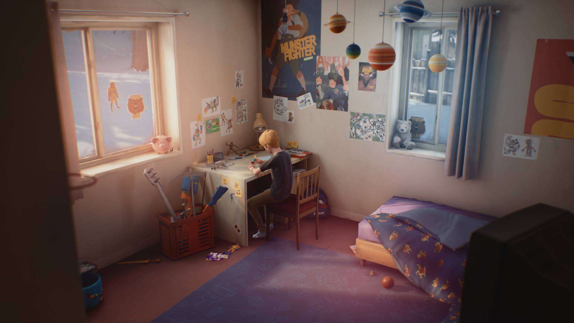 Un fanciullo come tanti, dicevamo. Tant’è che la sua cameretta, una delle location principali de Le Fantastiche Avventure di Captain Spirit, è un vero e proprio regno della sua fantasia. Un tripudio dell’infanzia al punto che a vederla abbiamo sospirato i bei tempi dell’infanzia. Tra i tanti disegni e giocattoli, action figure, Chris passa il suo pomeriggio creando nuove battaglie e nuovi capitoli della sua storia. La passione e la grande fantasia le sono state donate dalla mamma, brillante disegnatrice.