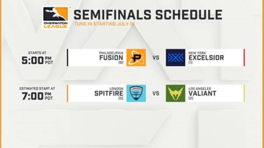 I team che accedono alle “Final Four” sono dunque decisi. Gli abbinamenti dipendono dai risultati ottenuti dalle squadre nella stagione regolare: i primi classificati New York Excelsior (34-6) affronteranno i quarti qualificati Philadelphia Fusion (24-16), mentre i secondi, i Los Angeles Valiant (27-13), se la vedranno con i terzi, London Spitfire (24-16).