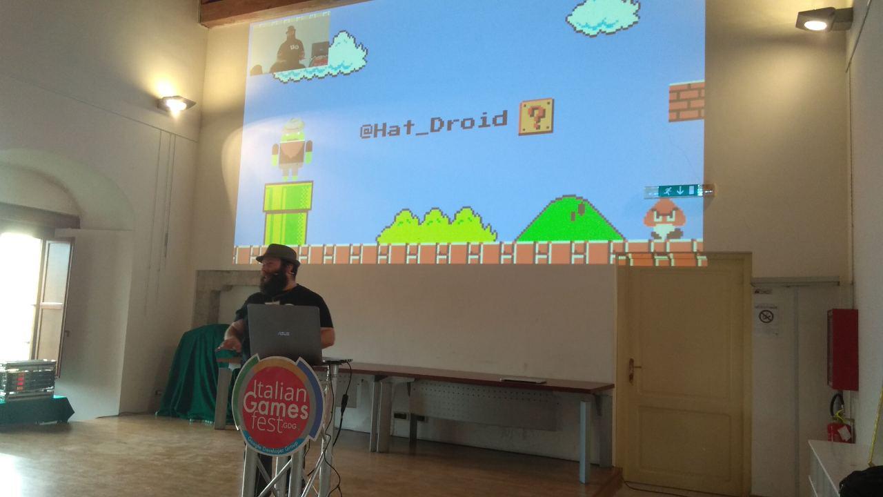 Samuele Sciacca ha poi presentato il talk “Da Idea a videogioco in 3 giorni” nel quale ha sostanzialmente illustrato Construct 3 che permette con alcuni accorgimenti di realizzare videogiochi senza conoscere una linea di codice. Un po’ come il famoso RPG Maker che consente di realizzare videogiochi di ruolo di tutti i generi. Il programma è diventato nel corso degli anni un tool web accessibile da tutti i browser e da tutte le piattaforme. Ha quindi illustrato le varie potenzialità del programma che permette di acquisire le basi e comunque sviluppare titoli casual. Mi ha colpito l’entusiasmo di Samuele Sciacca. Appena ventenne ma già avviato a questo tipo di attività e, secondo me, con un futuro da imprenditore.