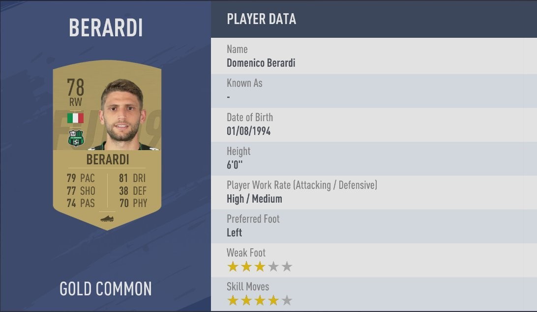 Lorenzo Insigne del Napoli è il top mentre a seguire un altro giocatore del Napoli: lo spagnolo Callejon. Simone Verdi è quinto e fa ben sperare. Chiude la classifica Domenico Berardi: 78… e fa capire quanto al campionato italiano manchi ancora di giocatori di un certo spessore… a meno che il buon Berardi non abbia una valutazione congrua.