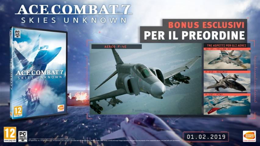 Chiunque prenoterà Ace Combat 7: Skies Unknown per PlayStation 4, Xbox One o Pc via Steam riceverà il Boeing F4-E Phantom II, insieme a 3 skin aggiuntive.