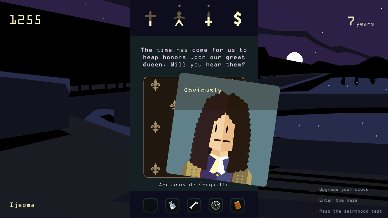 Seduti sul trono come monarca benevolente o con pugno di ferro i giocatori tenteranno di imporre nel bene o nel male il proprio potere sul regno. Sopravvivere alle richieste infinite di consiglieri, contadini, alleati e nemici mentre si mantiene un equilibrio tra le fazioni influenti del proprio regno. Ma bisognerà guardarsi bene da ogni decisione che può avere grandi ripercussioni e sfortunate conseguenze che potrebbero mettere in pericolo il proprio regno e mettere a rischio la dinastia familiare.