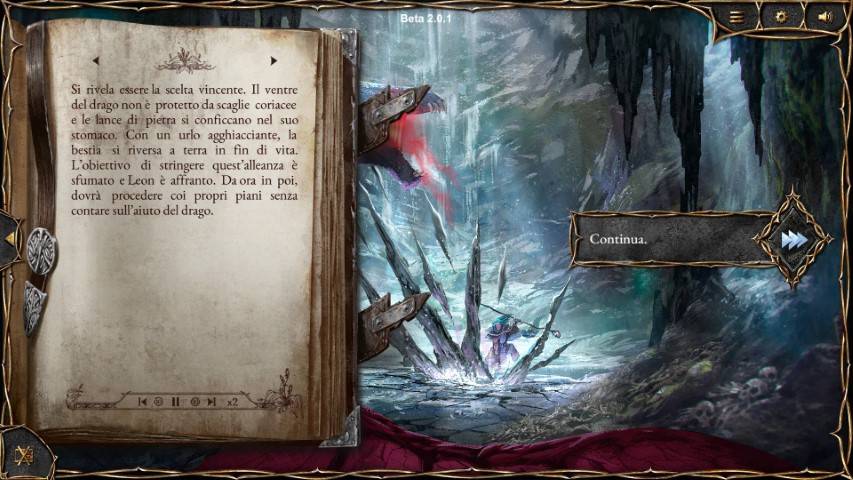 Manca del tutto l’azione. Ma gli appassionati dei libri fantasy non faranno caso a questo ed anche chi cerca una storia estremamente ramificata che permette oltre 40 finali e di leggere un testo di oltre 400.000 parole con centinaia di snodi narrativi e scelte da compiere troverà sicuramente pane per i propri denti. I numeri sono alti. Per non parlare delle oltre 400 morti diverse. Si, avete letto bene. Ed il numero così alto suggerisce che la morte del personaggio è dietro l’angolo quasi sempre. In caso di dipartita (e ne esistono anche per errori stupidi, nemmeno fossimo in Game of Thrones) si potrà comunque ripartire. Sarà, infatti, possibile in un numero limitato di volte, “riavvolgere” il nastro e ritentare la decisione. Questo grazie al Sistema Destino.