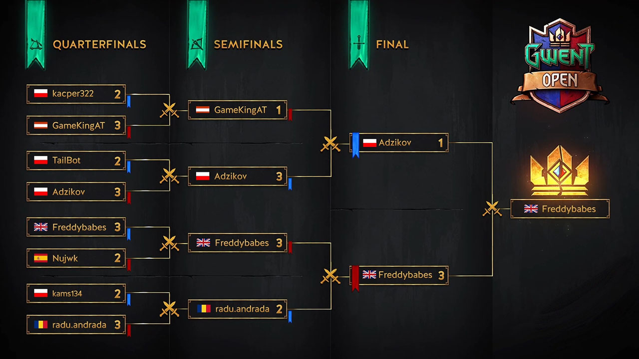 Il torneo ha visto otto tra i migliori giocatori di GWENT competere per il montepremi di 25.000 dollari. A ciò si aggiungono una robusta quantità di Crown Points ed un posto nel prossimo GWENT Challenger — l’ultimo evento prima del gran finale della serie GWENT Masters.