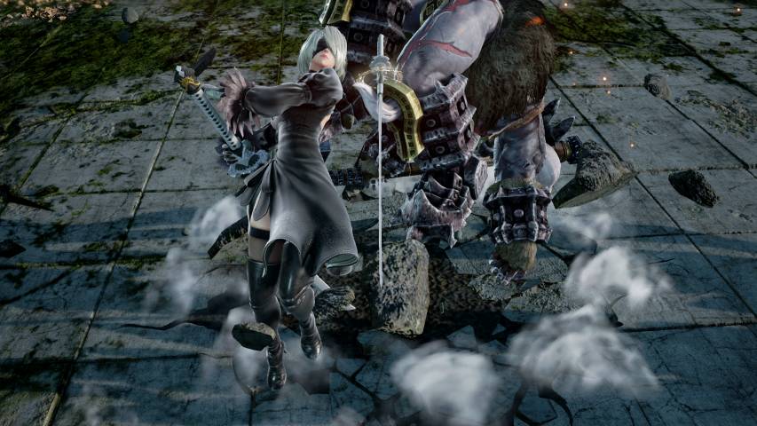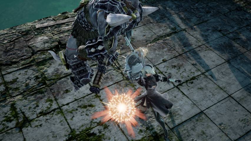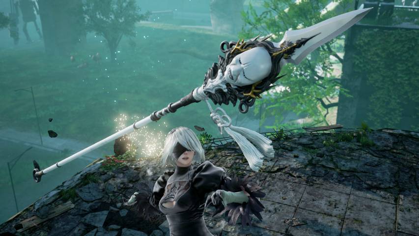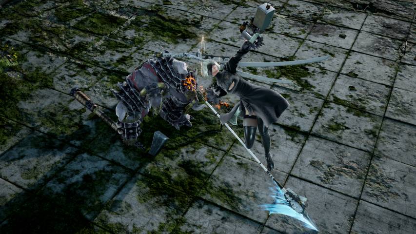 Mandata in missione segreta, 2B è giunta in un luogo che non aveva mai visto prima. Controllando il suo database linguistico per una descrizione, questo le riportò le parole “antico castello”. I suoi sensori non individuarono nessuna biomacchina. “Comunicazione ricevuta dal Bunker – disse la voce robotica proveniente dal pod di supporto di 2B – missione accettata. Obiettivo: Distruggi l’entità nemica, Soul Edge”.