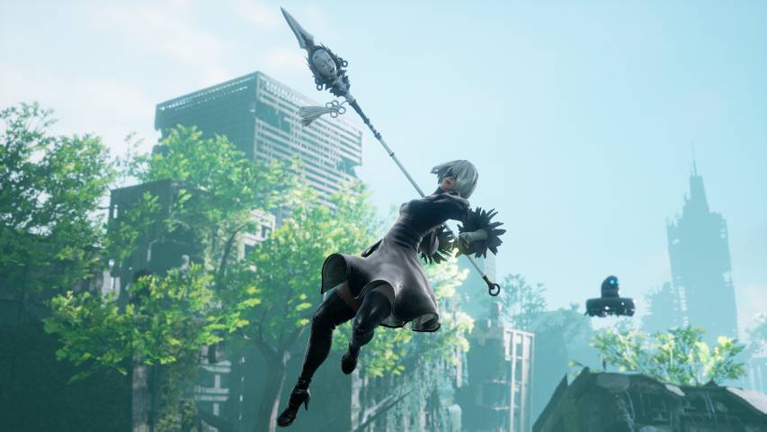 2B maneggia due spade, Virtuous Contract e Virtuous Treaty. Entrambe sono state accuratamente potenziate per raggiungere la massima efficienza quando impugnate da un androide YoRHa. La sua tecnica di combattimento è appositamente costruita per sfidare le biomacchine, sfruttando salti acrobatici e attacchi a mezz’aria, schivate fulminee e colpi perfettamente coordinati.