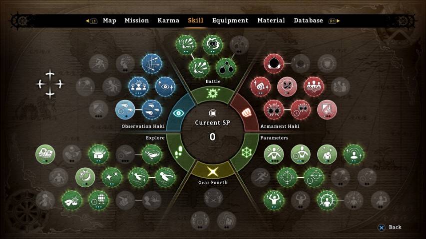 Il video di gioco offre un’anteprima dello Schema delle abilità e delle meccaniche di Creazione/Cucina. Completando le missioni e progredendo nel gioco, Rufy otterrà punti abilità che consentiranno ai giocatori di potenziare i suoi poteri e capacità tramite lo Schema delle abilità per adattarsi meglio al proprio stile di gioco.
