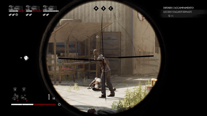 Dato che parliamo di uno shooter cooperativo, sarà letteralmente fondamentale la pianificazione delle azioni e il lavoro di squadra. Le orde di zombie sono tante, i punti ferita e le nostre munizioni, pochissimi. Dovremo essere veloci, e mai voltare le spalle all’orda, pena un attacco ravvicinato che potrebbe costarci la vita. Mentre corriamo lungo la mappa cercando di trovare assi di legno per riparare un cancello, o del filo spinato per rallentare i non morti, dovremo raccogliere alcune risorse che ci serviranno in seguito nell’accampamento. Lo spawn delle risorse non è casuale, quindi dovremo raccoglierne il più possibile. Se dovessimo cadere durante uno scontro, prima di venire uccisi avremo la possibilità di sparare alcuni colpi con la pistola, sperando nell’arrivo di un nostro alleato che possa rianimarci. In caso contrario, il nostro personaggio dovrà aspettare un certo numero di secondi prima di poter rientrare in gioco.