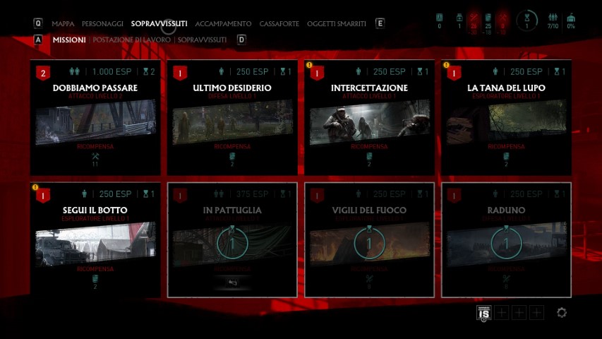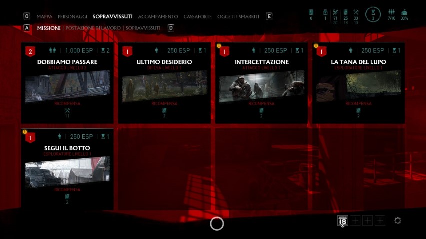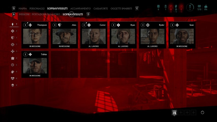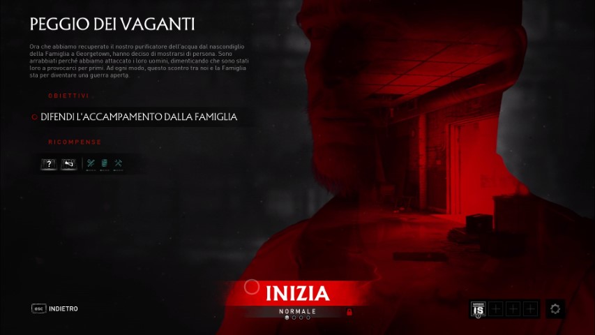 Nel mentre, seguiremo le vicende dei nostri alleati. Per il completamento di una missione, è fondamentale che almeno un personaggio rimanga in vita, perché se tutti dovessero cadere durante lo svolgimento della mappa, la missione fallirà e andrà ripetuta dall’inizio. Nella prima missione, il nostro compito sarà quello di sopravvivere. Le altre vedranno il nostro team impegnato a recuperare materiali, trovare o recuperare determinate risorse, sopravvivere ad attacchi della Famiglia. La varietà c’è, il problema è l’interpretazione.