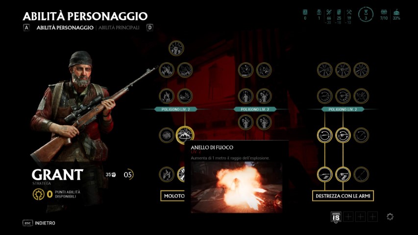 Ad esempio, salendo di livello con Grant, avremo la possibilità di portare più munizioni con la pistola o il fucile di precisione, o estendere il raggio delle nostre molotov. Ci sono diverse abilità legate a ciascun personaggio, anche se la varietà è davvero risicata.