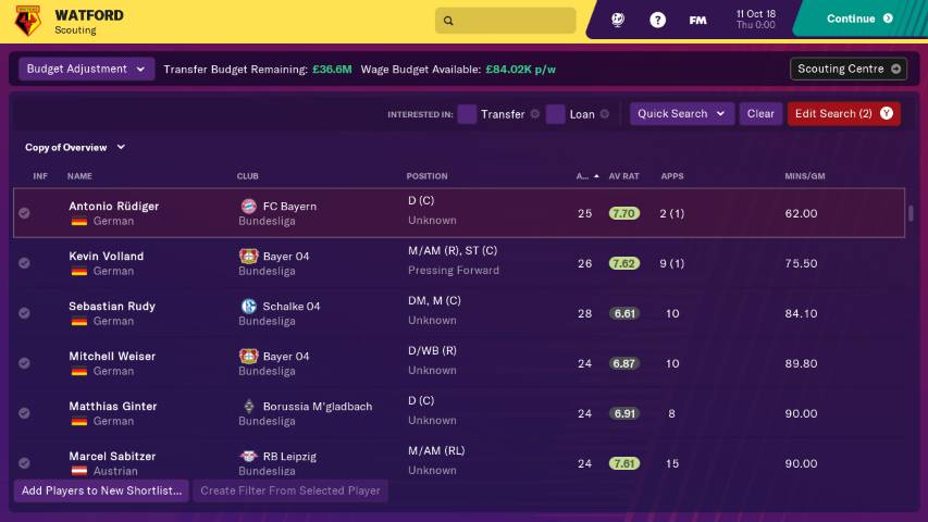 BUNDESLIGA: le prime due serie del campionato tedesco fanno il loro debutto in Football Manager 2019 Touch, con stemmi dei club, magliette, facce dei giocatori e trofei, tutti ufficiali.