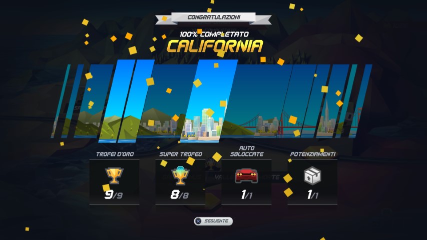 Andando avanti nelle competizioni e ottenendo punti, potremo sbloccare altri veicoli che si aggiungeranno al nostro garage (in totale, sono poco più di una trentina e spaziano dalle super car che ricordano le Ferrari e le Lamborghini, per passare a modelli più raffinati, vicini alle BMW, ai camioncini Hippy e altro).