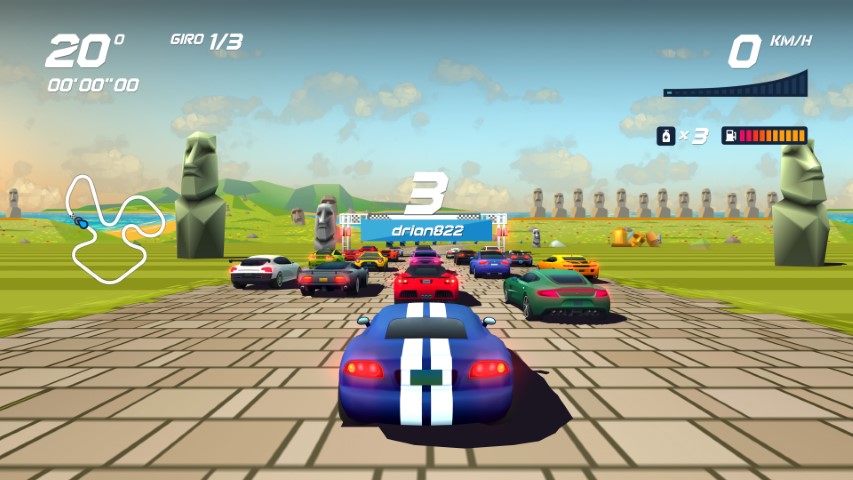 Sarà, infatti, una scelta più strategica di quello che si potrebbe inizialmente pensare, e non a caso, spesso e volentieri potrà capitare di dover ripetere gara cambiando macchina proprio perché la scelta fatta in precedenza era errata. Ma torniamo a Grass Hills; finito il counter la nostra prima gara inizia ed è tutto un susseguirsi di curve larghe, curve strette, veloci rettilinei, e 19 concorrenti per la vittoria che non ne vogliono proprio sapere di farsi da parte, scegliendo saggiamente di posizionarsi praticamente ogni volta nella posizione giusta per rallentarci.