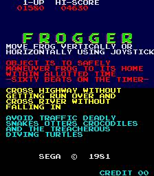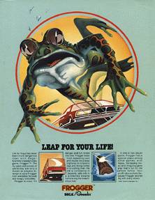 Frogger richiede attenzione estrema e riflessi d’acciaio poiché, una volta superata la parte inferiore dello schermo, occorrerà un attento tracking oculare per seguire il perfido movimento dei tronchi, scovare i malefici alligatori, trollare le tartarughe e centrare con il cranio l’umida tana. Quest’ultima operazione richiede un tempismo perfetto per innestare la rana nell’umido pertugio senza colpire l’immondo spigolo con il cranio. Le rane amano creare tane dotate di spigoli vivi a 90 gradi, a quanto pare.
