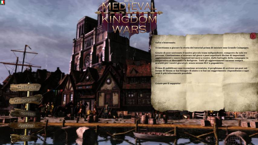 Prima di buttarci su quello che il gioco ha da offrire, spendiamo due parole sulla traduzione, visto che Medieval Kingdom Wars è interamente sottotitolato in italiano. Ad oggi, il genere degli strategici conta sempre meno titoli localizzati nella nostra lingua, ma anche titoli di generi differenti come i city builder (date un’occhiata a Cities Skyline) hanno abbandonato il nostro paese, favorendo localizzazioni di paesi emergenti ma che hanno più mercato, quali per esempio la Polonia.