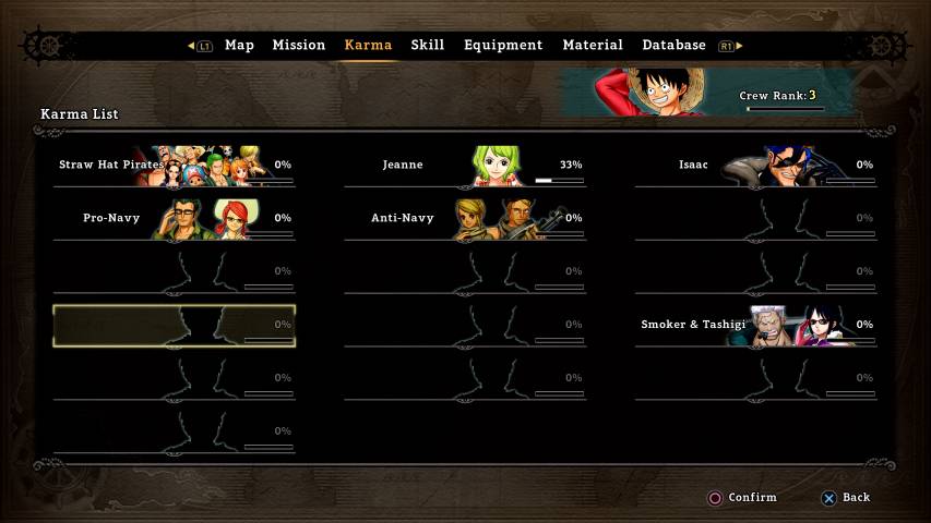 La prima nuova caratteristica è il sistema Pirate Karma. Completando alcune missioni per un determinato personaggio o fazione, il Pirate Karma di Rufy nei loro confronti aumenterà. E una volta raggiunti determinati livelli, i giocatori sbloccheranno alcune sequenze filmate e missioni uniche.